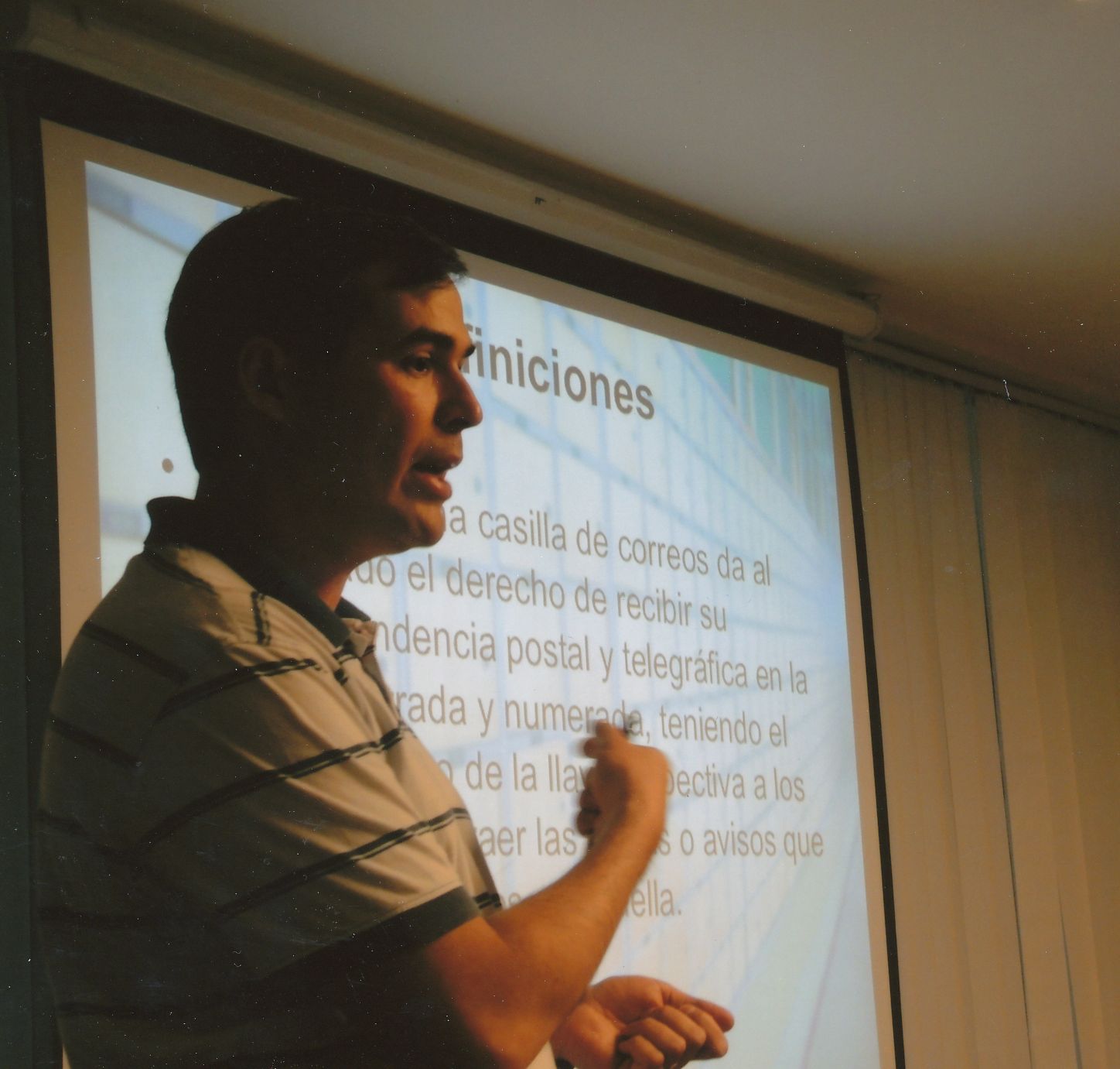 Santiago Tonini en una conferencia pronunciada en Córdoba dentro de un simposio de enteros postales.-
