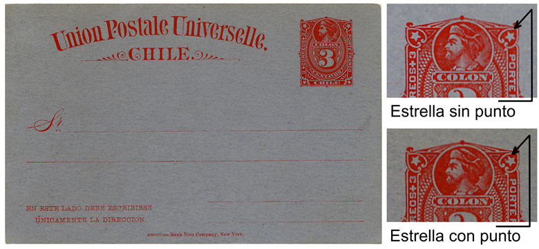 Estas tarjetas se diferencian en lo principal, respecto de las emitidas en 1882 en que tienen el pié de imprenta en el centro inferior y fuera del marco.