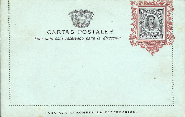 To sum up the story of the Juan Montalvo letter card we have established that it was used beginning January, 1907, but that its usage was only legalized on August 3, 1911. It was replaced by one with a black control mark on February 10, 1913 and by one with a red control mark on July 18, 1919. Subsequently, the remainders were demonetized and used for a variety of other reasons.