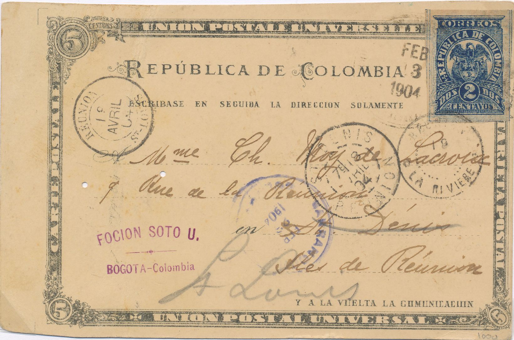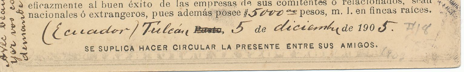 Quizás la última fecha conocida sea la de esta tarjeta enviada a Paris vía Guayaquil.