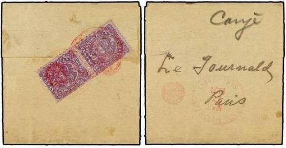 Se conocen ejemplares de fajas postales, de finales del siglo XIX, con etiquetas impresas del Ministerio de Relaciones Exteriores que enviaba publicaciones a los representantes consulares en el exterior.