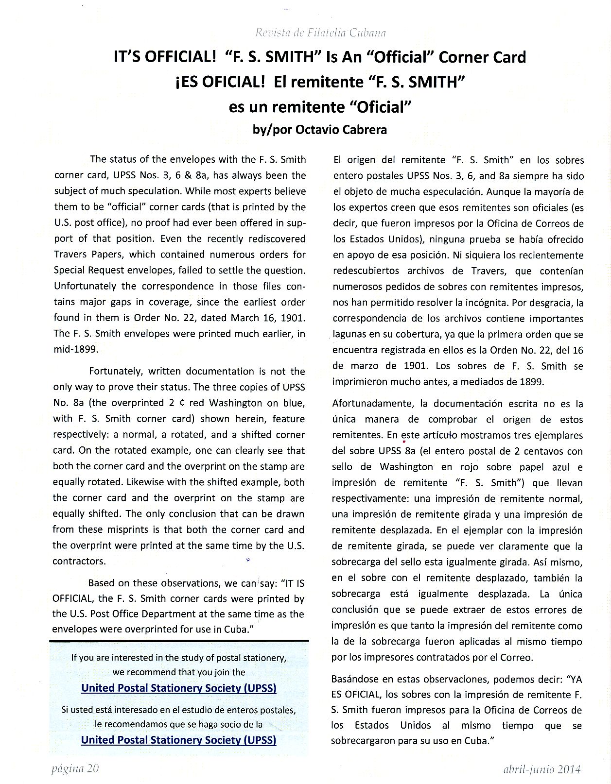 En el número correspondiente a los meses de Abril-junio de “Revista de Filatelia Cubana” encontramos este excelente artículo de Octavio Cabrera, como todos los trabajos presentados en esa Revista es de gran interés, por lo que os recomendamos, lo leáis, y coleccionéis, para vuestros archivos.-
