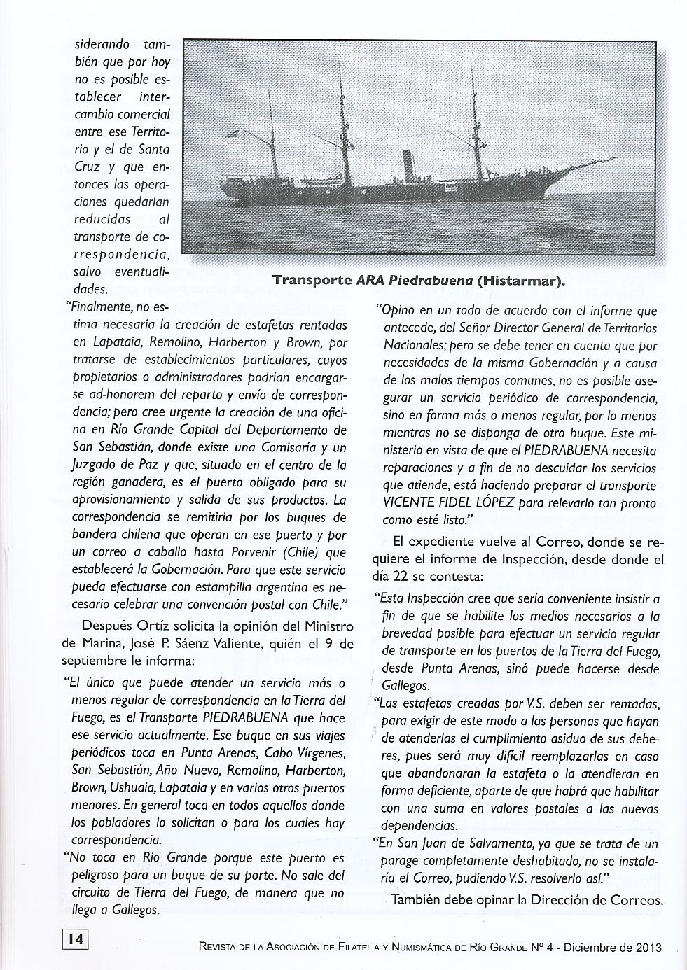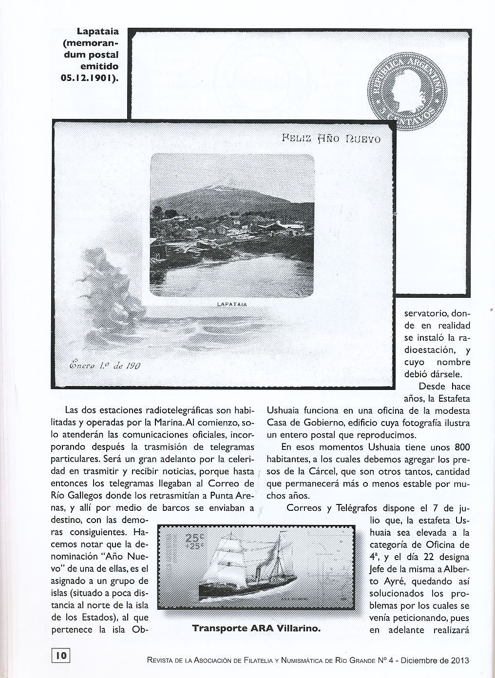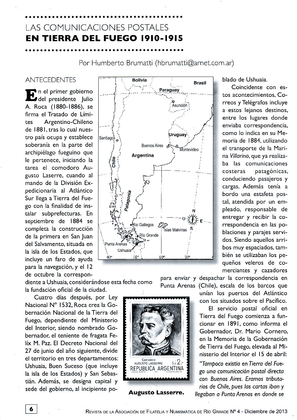 Trabajo aparecido en el número 4 de la Revista de la Asociación de Filatelia y Numismática de Rio Grande, correspondiente al mes de diciembre del año 2.013.-
