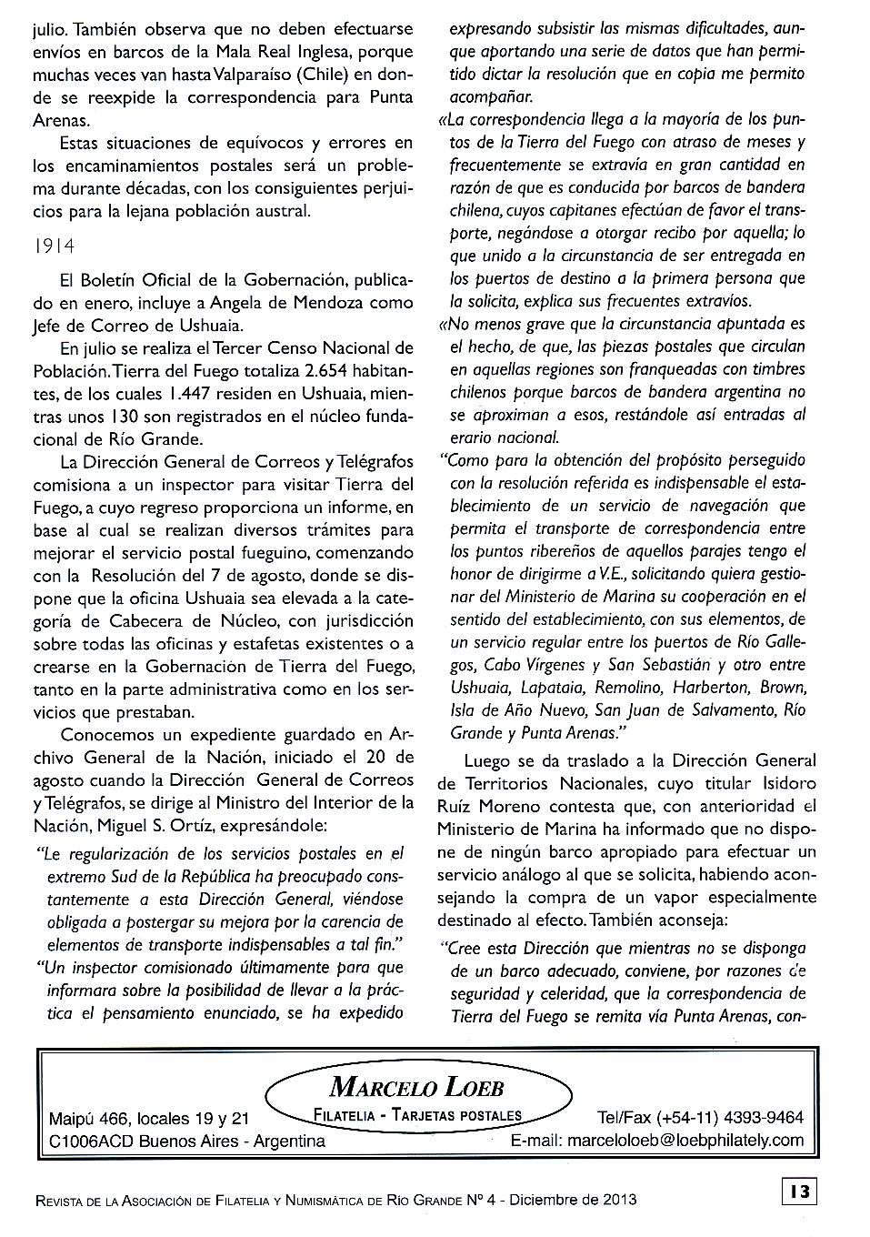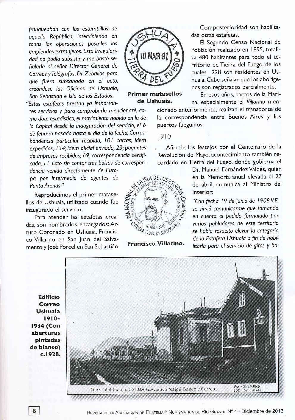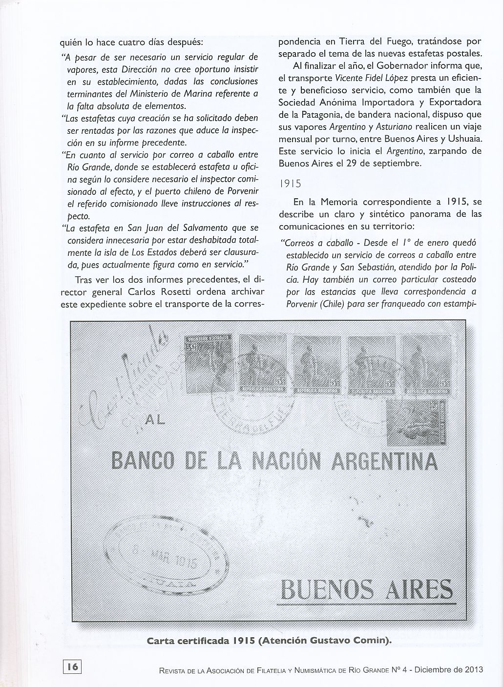 Trabajo aparecido en el número 4 de la Revista de la Asociación de Filatelia y Numismática de Rio Grande, correspondiente al mes de diciembre del año 2.013.-