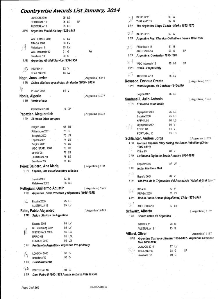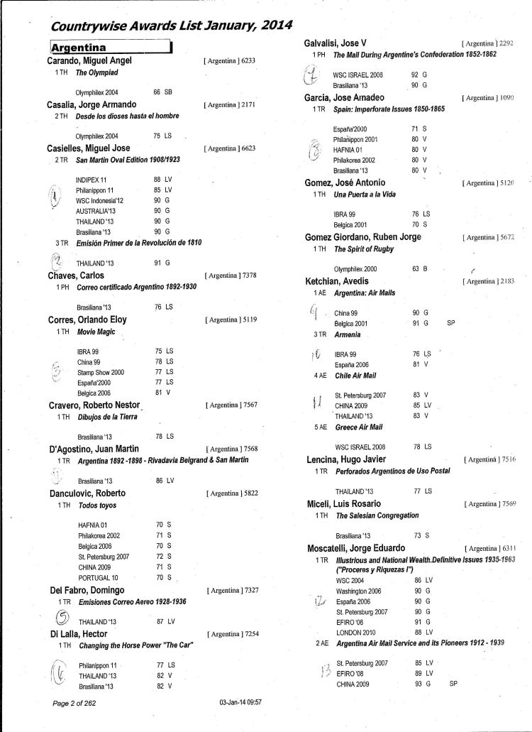 | ¶ Servicio Oficial argentino, 1938-1959 | 86 | G+SP | Río Grande 2012 |