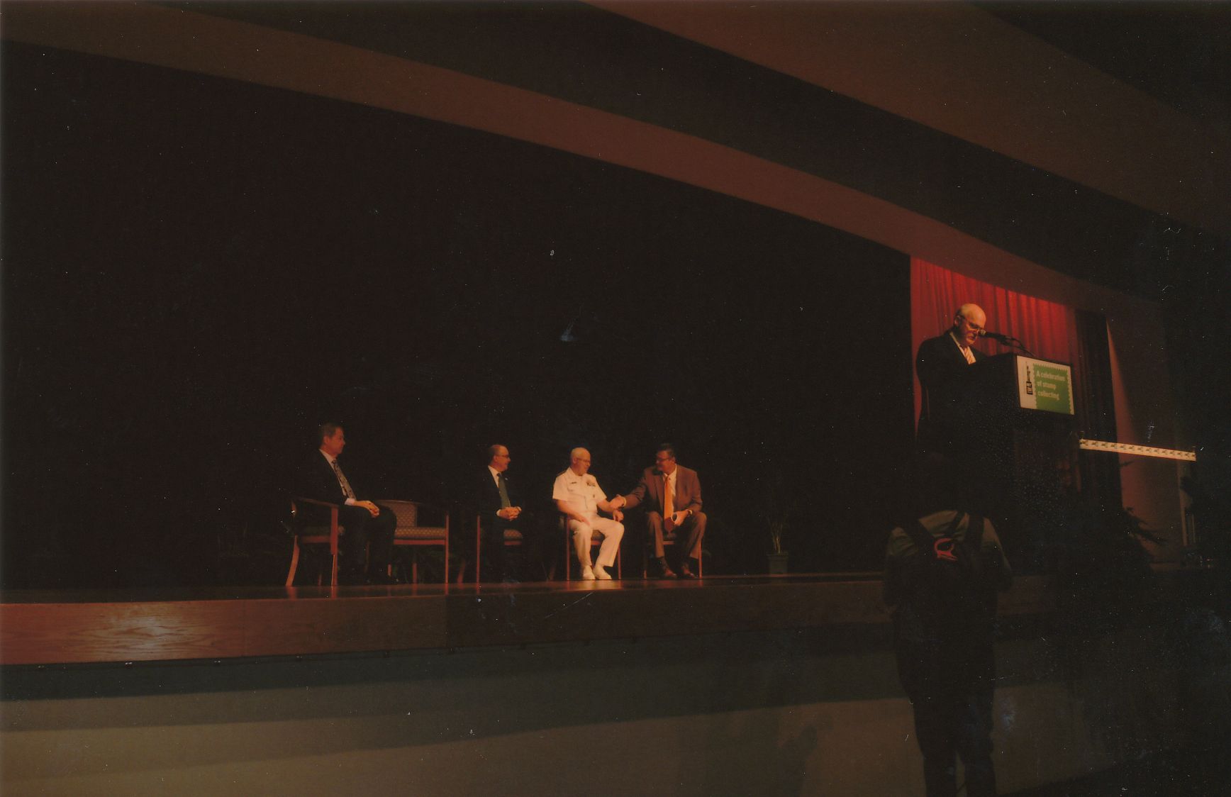 A la tribuna subieron cinco señores, que según el programa eran: el presentador Jamie Gouche, en representación del ejercito el Vicealmirante Joseph P.Mulloy, en representación del correo americano James Cochrane, el Presidente del Show Wade Saadi , y Estuart Weitzman por la organización.