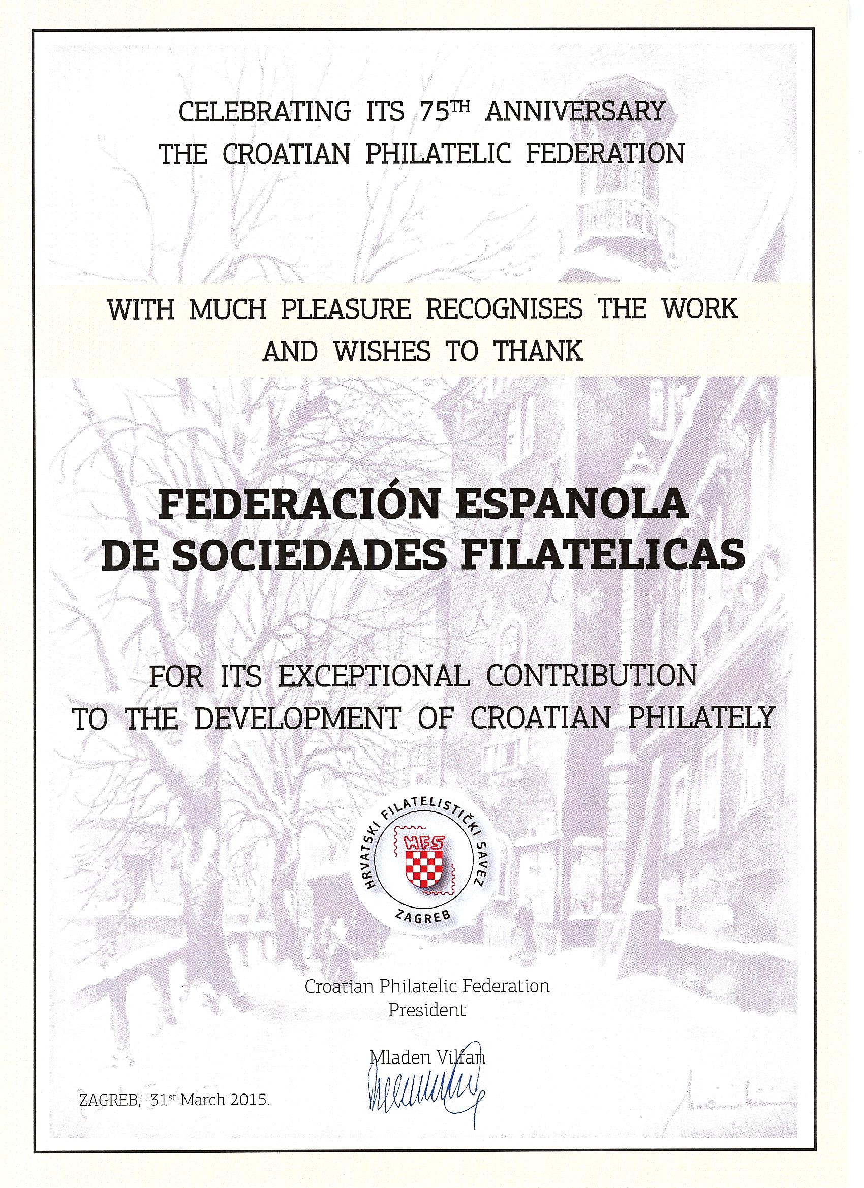 Dentro de las actividades de la Exposición Internacional CROATICA 2015, el comisario español y jurado FIP, José Manuel Rodríguez dictó el pasado 2 de abril en la sala de reuniones del Hotel Laguna de Zagreb una conferencia sobre enteros postales basada en la lección correspondiente del Curso de Filatelia realizado por la Sociedad Filatélica de Madrid en 2012. El presidente de la Federación Filatélica Croata, Mladen Vilfan, señaló en su presentación que era la primera vez que en Croacia se dictaba una conferencia sobre este tema, para el que no existían prácticamente coleccionistas en el país, y agradeció al conferenciante y a FESOFI la posibilidad de promocionar y conocer en profundidad este tipo de coleccionismo, máxime con los conocimientos de un jurado FIP en enteros postales. La sesión, que prevista inicialmente para cuarenta minutos duró más del doble, fue seguida con numerosas intervenciones por filatelistas de varios países.