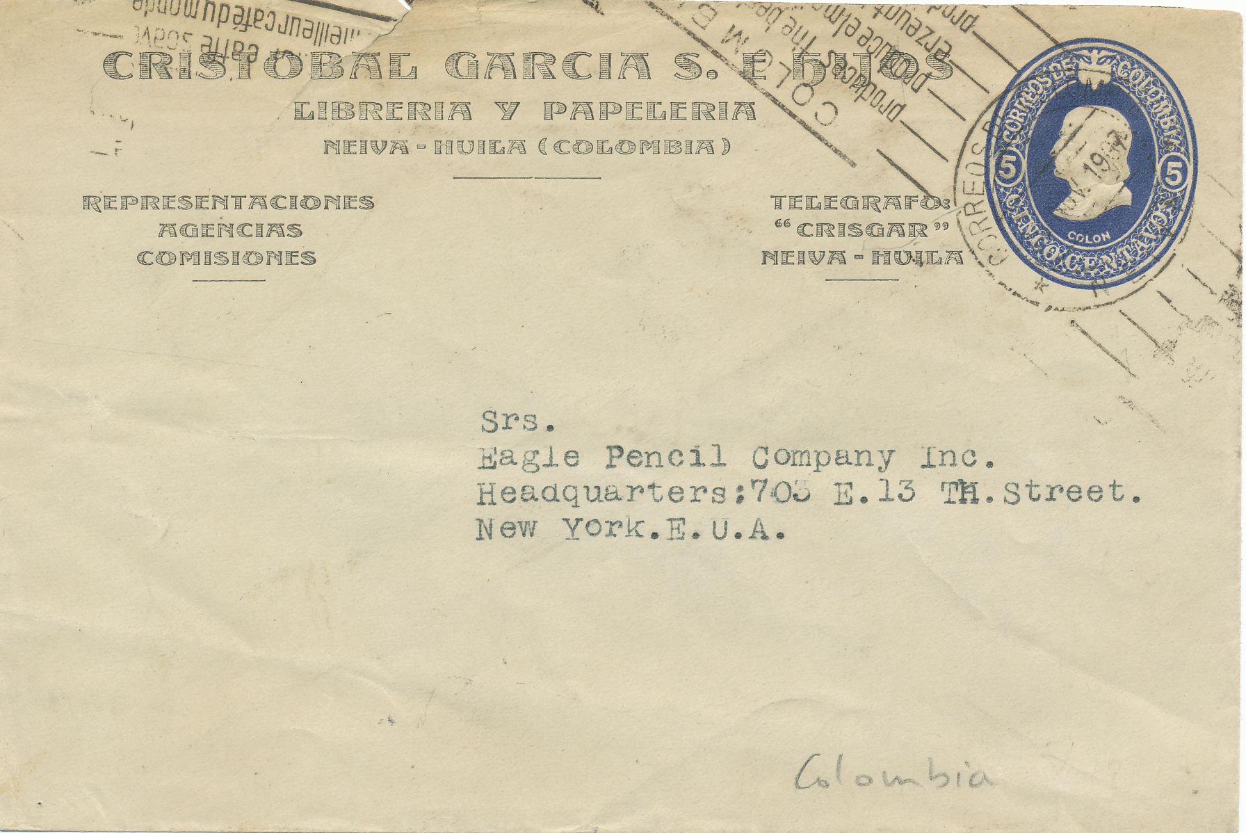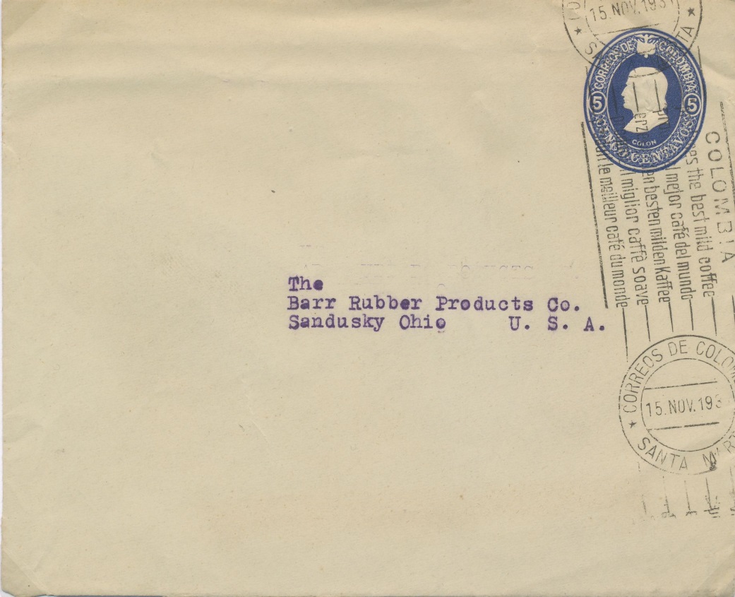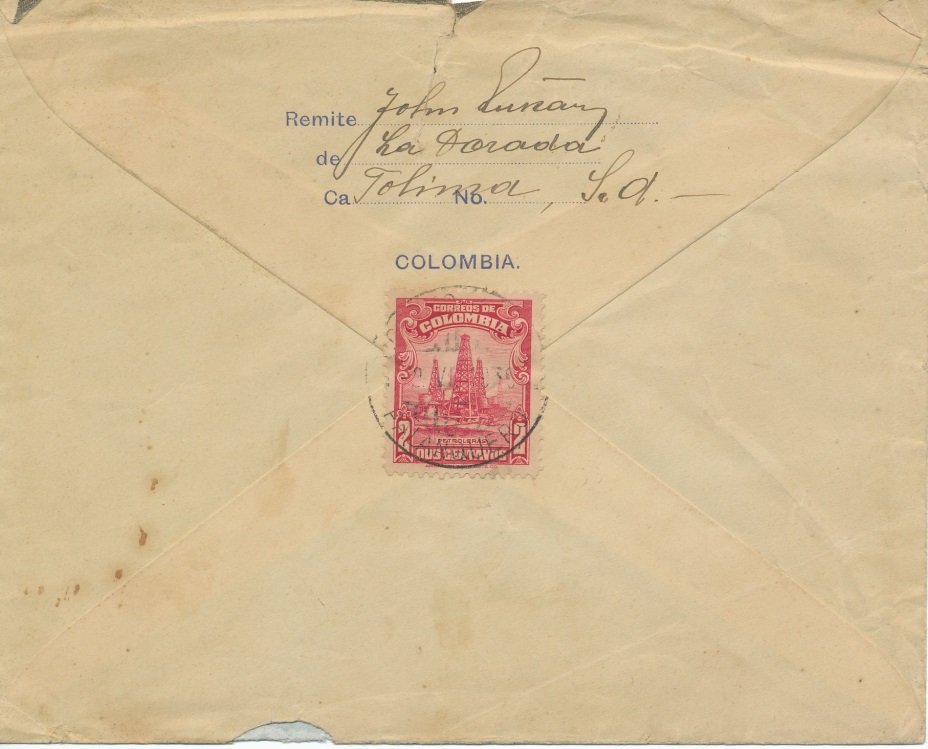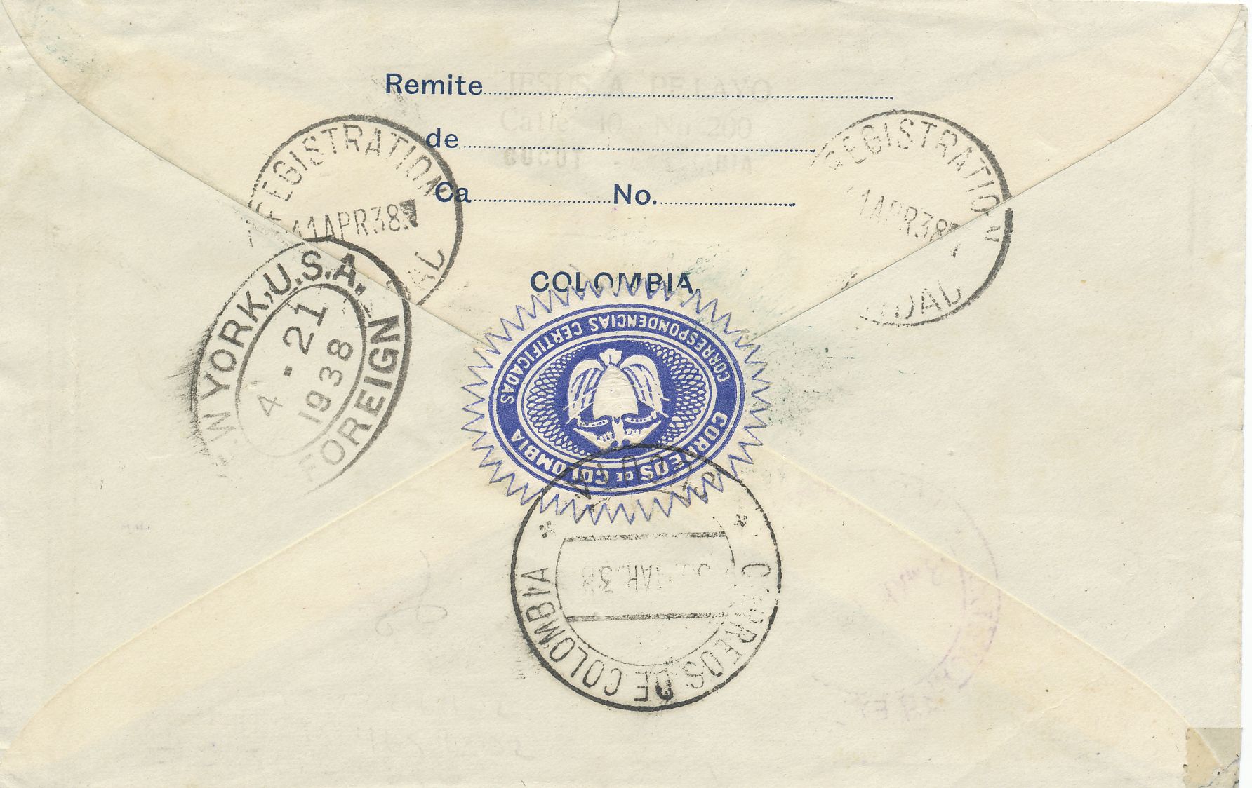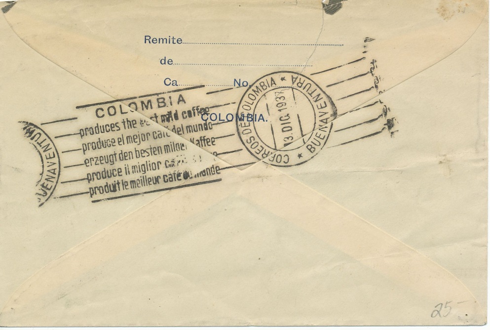 Sobre enviado el 13 de diciembre de 1937 desde buenaventura a N.Y.