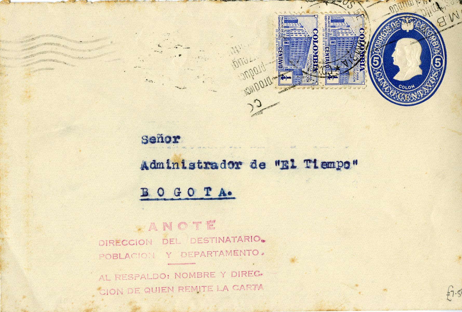 Sobres pre-fabricados, circulados en Colombia tamaño 150/102 mm.:
