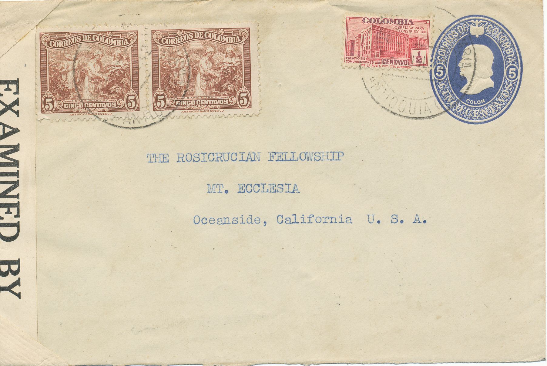 Carta enviada desde Antioquia California el 9 de julio de 1942 marcas de censura.