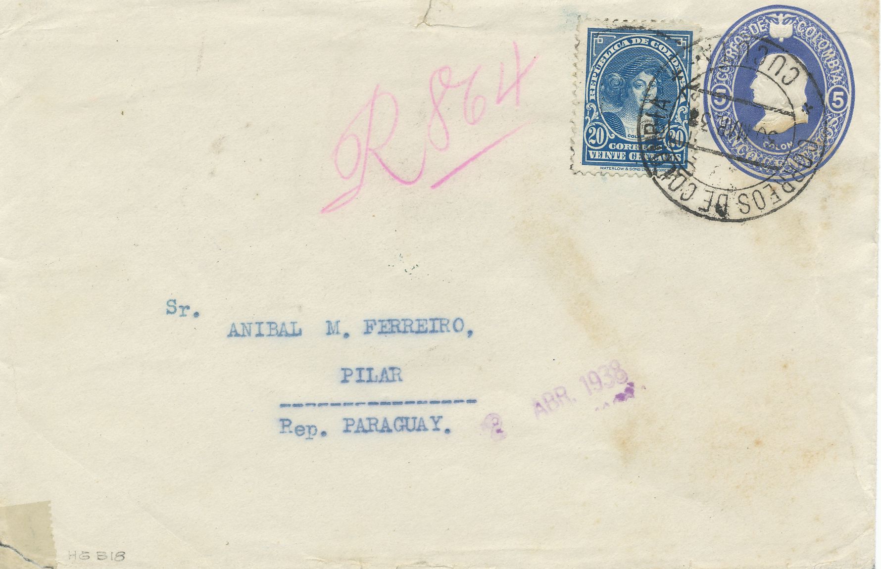 Sobre pre franqueado enviado a Paraguay el 11 de abril de 1.938.-