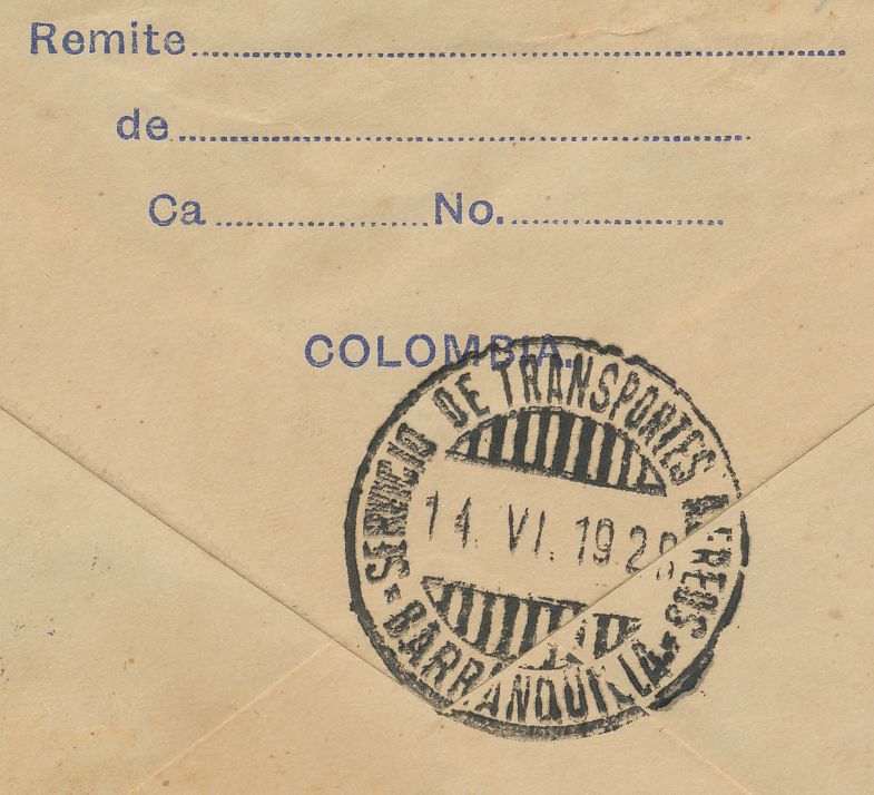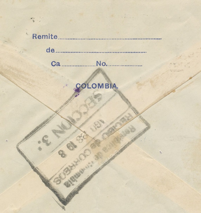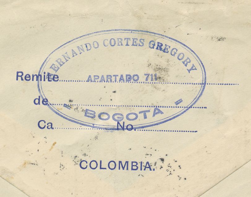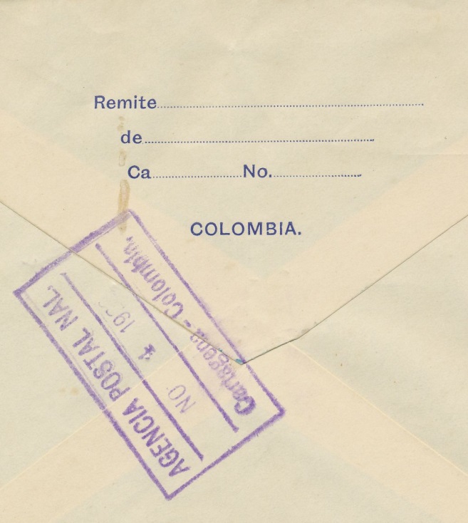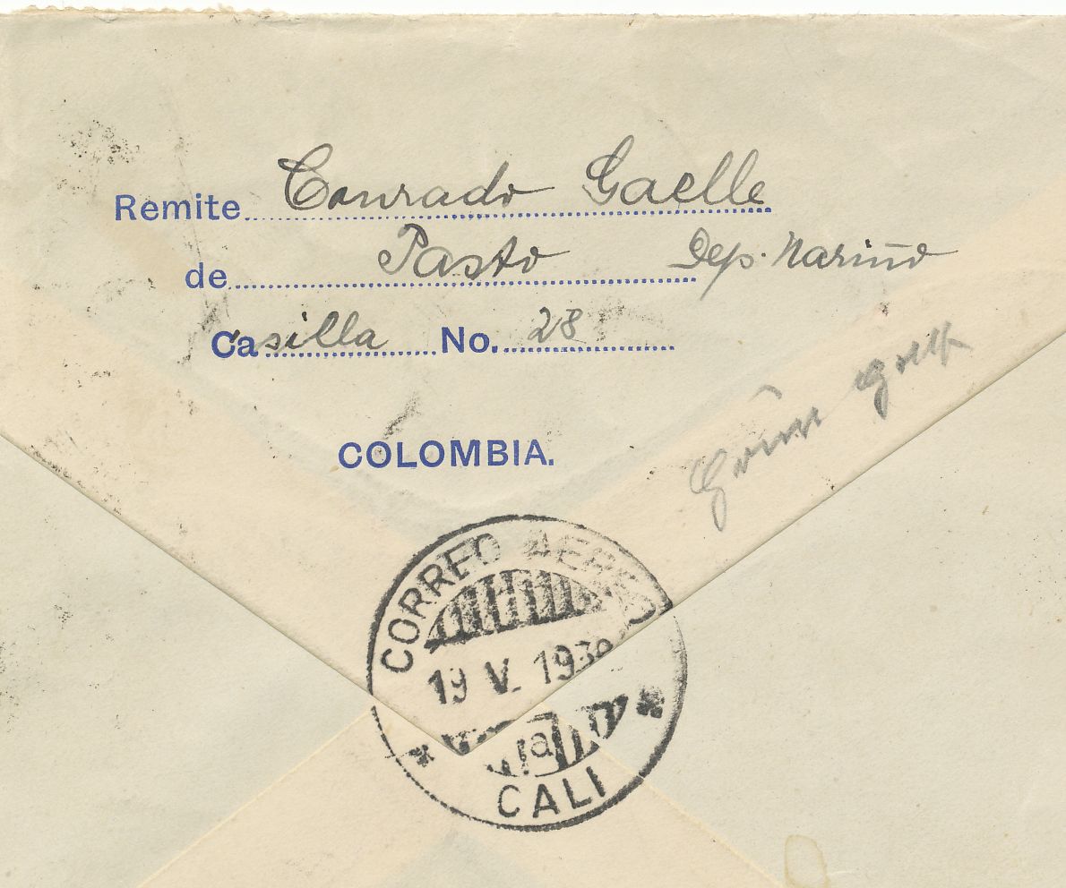 Parte posterior cuño de correo aéreo de Cali.-