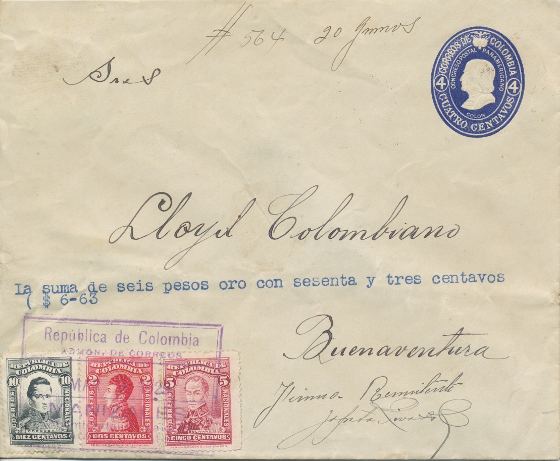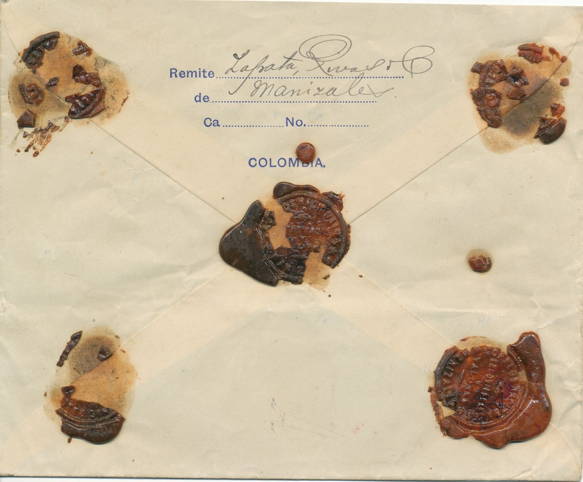 Carta circulada desde Manizales a Buenaventura, el 8 de marzo de 1.929.