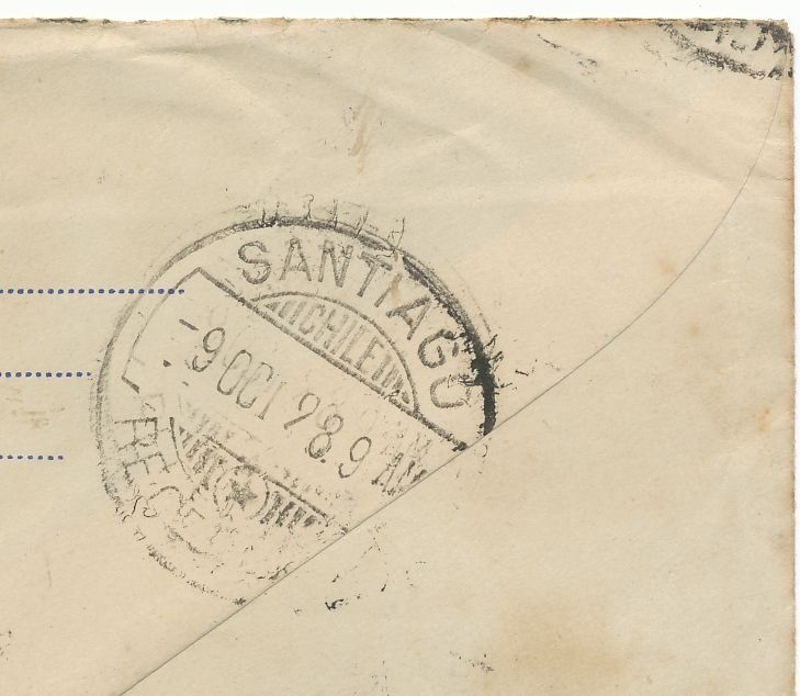 En la parte posterior se pueden ver los matasellos de llegada a Santiago.-