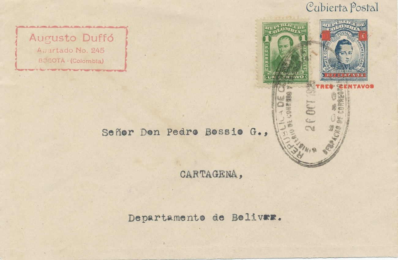 Sobre enviado el 26 de octubre de 1.925 de Bogotá a Cartagena.-