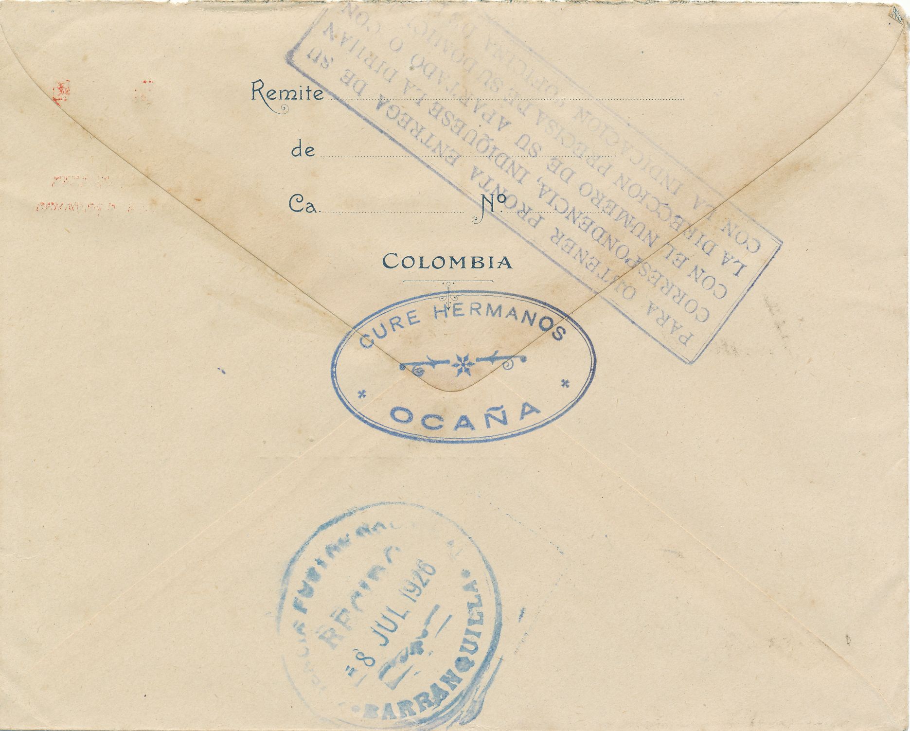 En la parte inferior sobre enviado desde Ocaña a Barranquilla el mes de julio de 1.926.-
