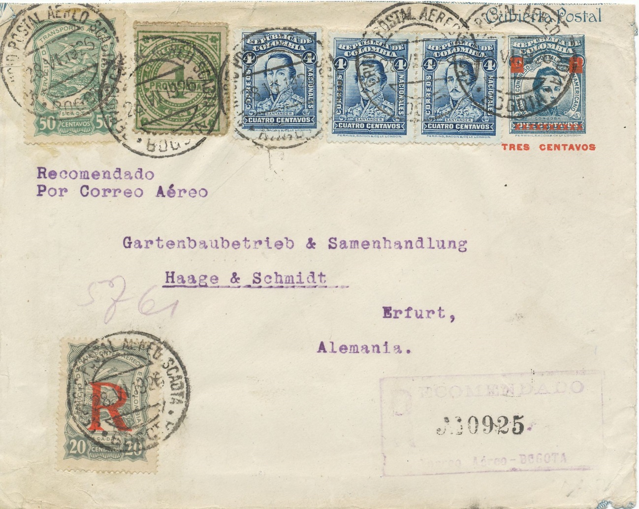 Carta enviada desde Bogota a Erfurt ( Alemania) el 28 de febrero de 1.926.-