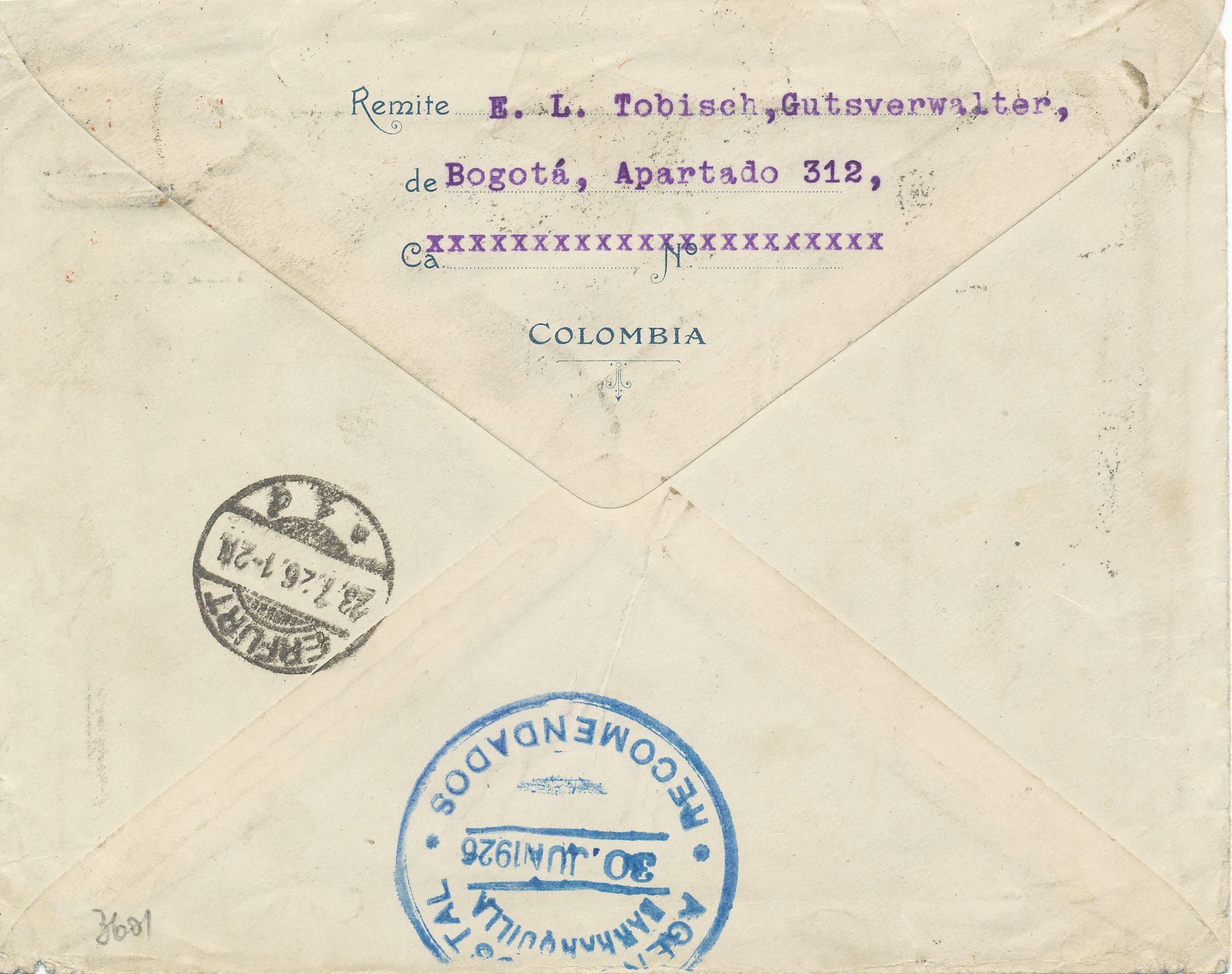 Sobre enviado desde Bogotá a Leipzig el 26 de octubre de 1.925.-