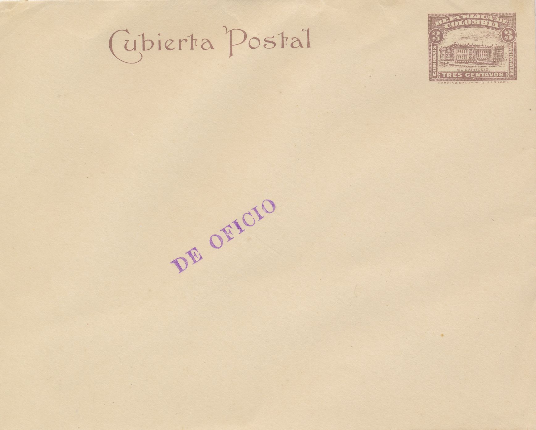 Ese año se encargó a la firma londinense Perkins&Co.Ltd. La impresión de unos sobres con el sello en el que se representa “El Capitolio”. Este sello había sido ya utilizado antes para la impresión de las tarjetas del año 1.891.-
