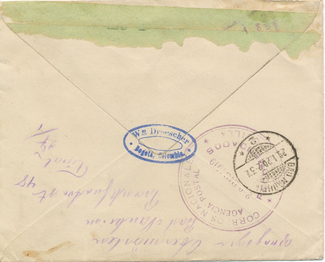 En la parte posterior podemos ver el cuño de llegada a Bogotá el 28 de febrero de 1.922.-