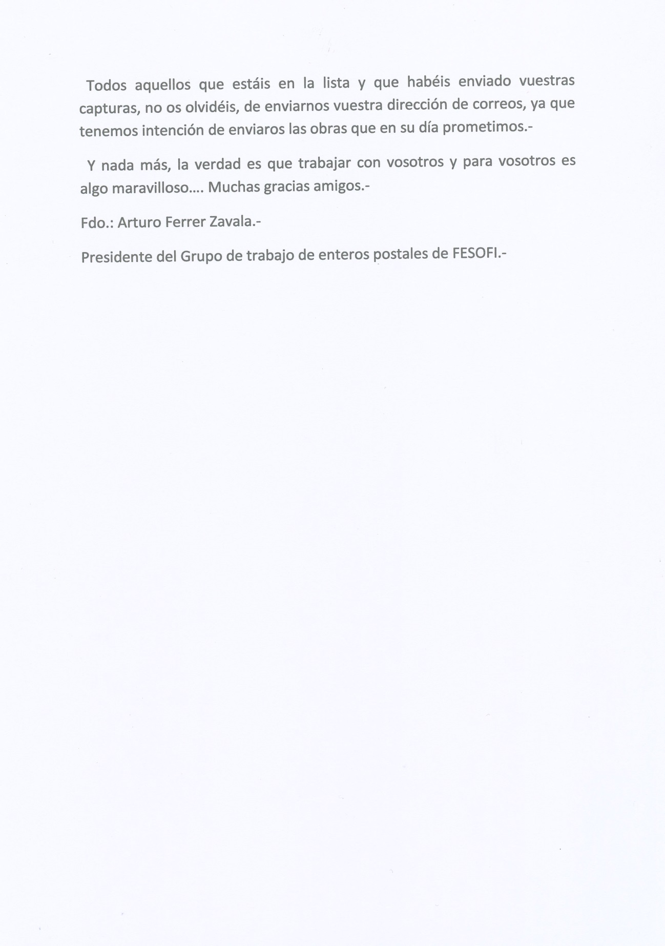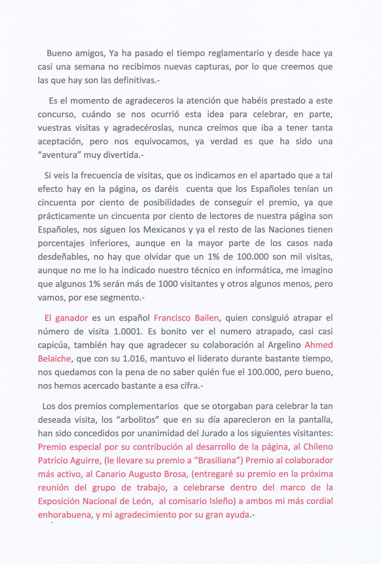 También como en aquella ocasión dejaremos un plazo de quince día, después de la aparición del numero para que nos enviéis a mis direcciones de la página Web, el numero.-