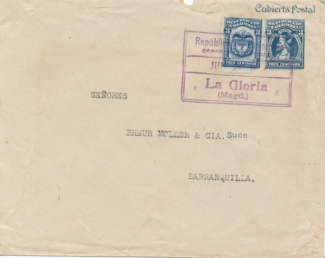 Sobre enviado desde desde La Gloria a Barranquilla.-