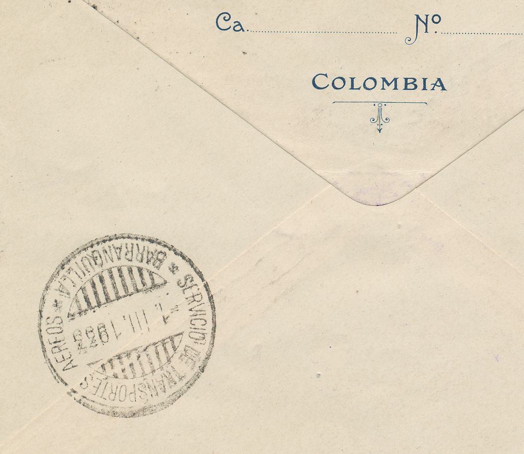 Parte trasera cuño del servicio de transportes aéreos de Barranquilla.-