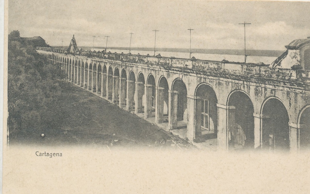 Foto del puerto de Cartagena de Indias, al dorso de la tarjeta anterior.-