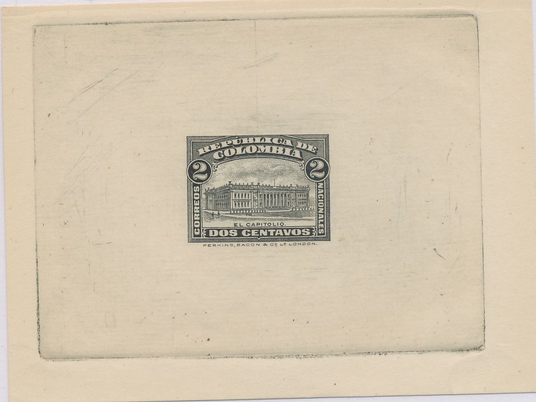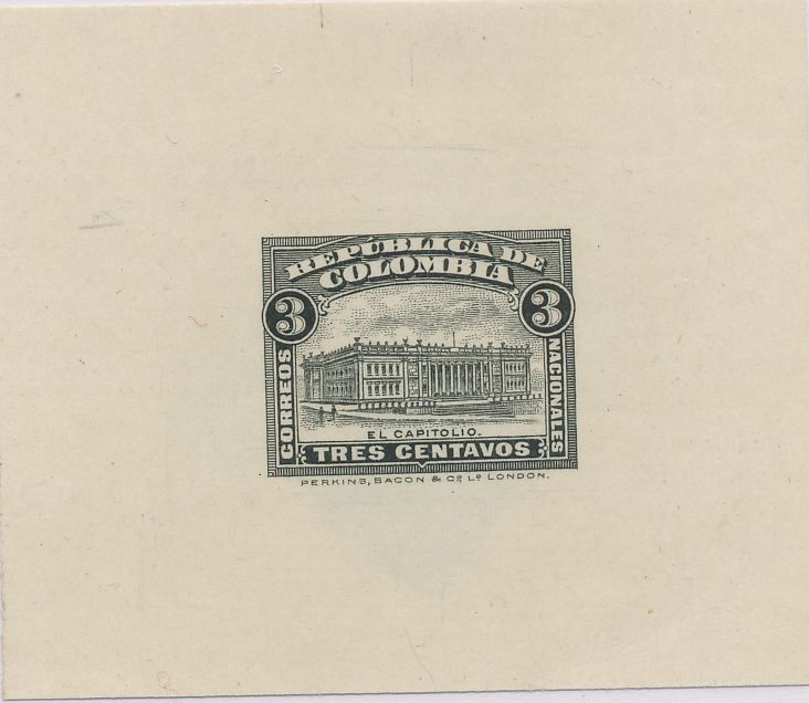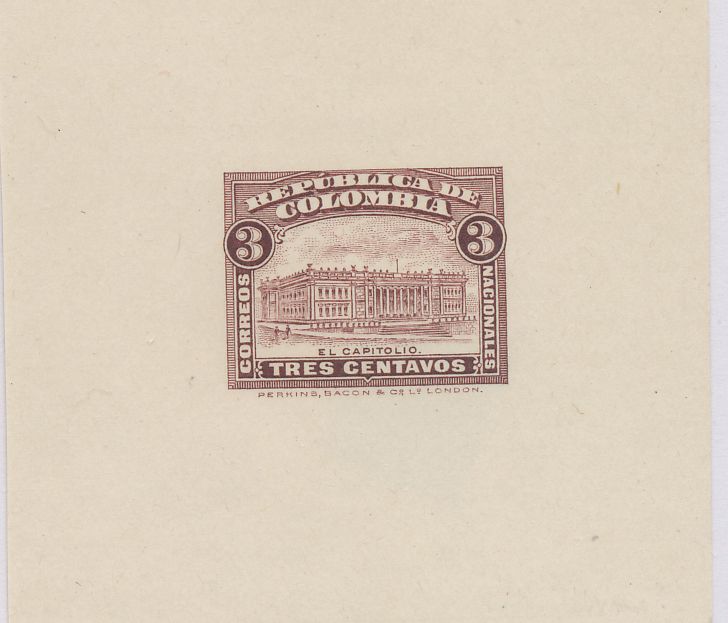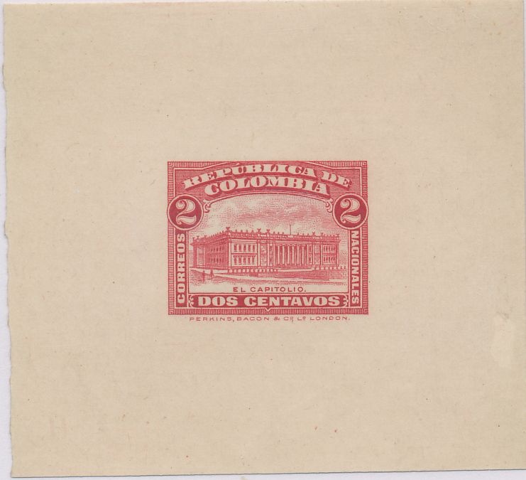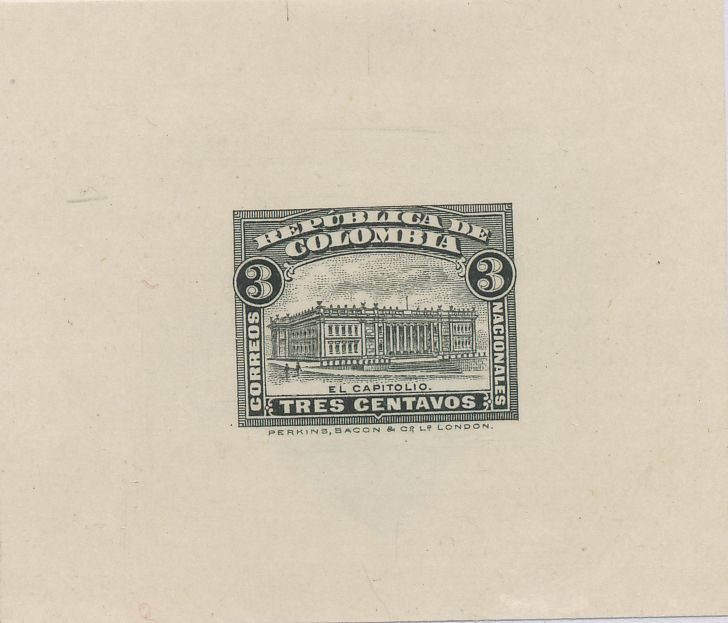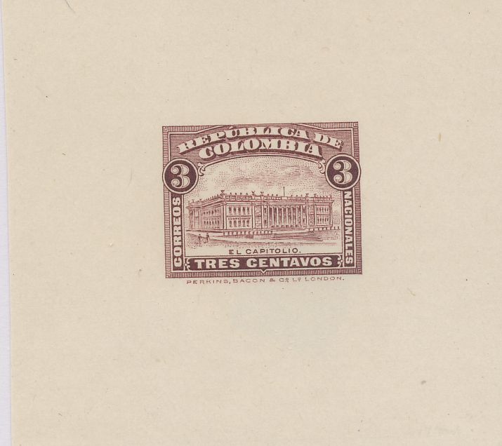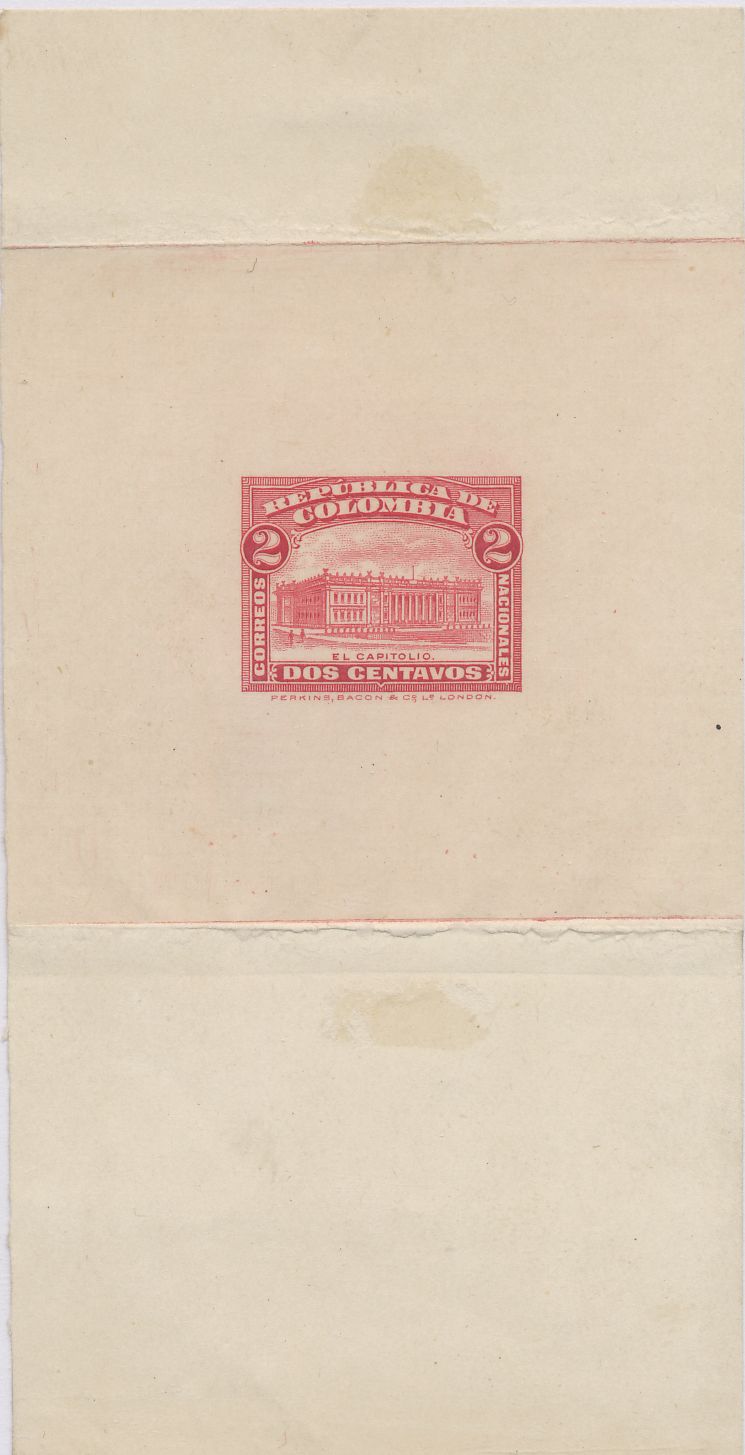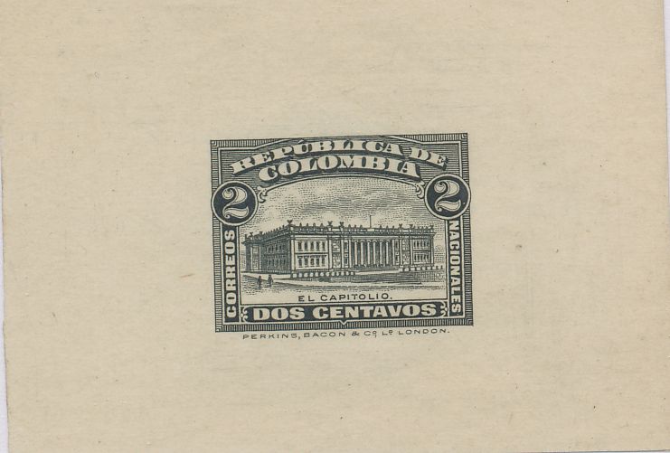El monumento representado en el sello es el Capitolio Nacional de Bogotá. La primera impresión de esta tarjeta se hizo el día 23 de agosto de 1.916 entrando en circulación en noviembre de ese año y la segunda el 25 de agosto de 1.917, el envió a circulación se retrasó por causa de la segunda guerra mundial, se imprimieron en ambos casos cincuenta mil tarjetas.-
