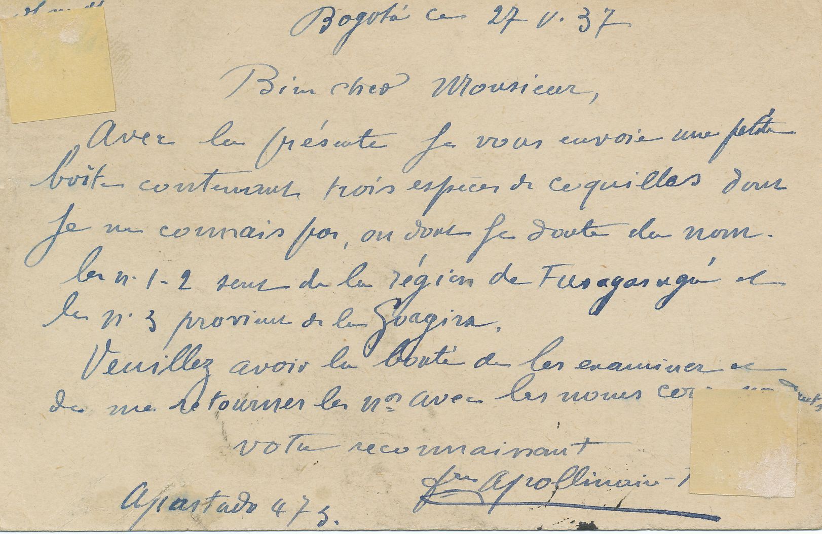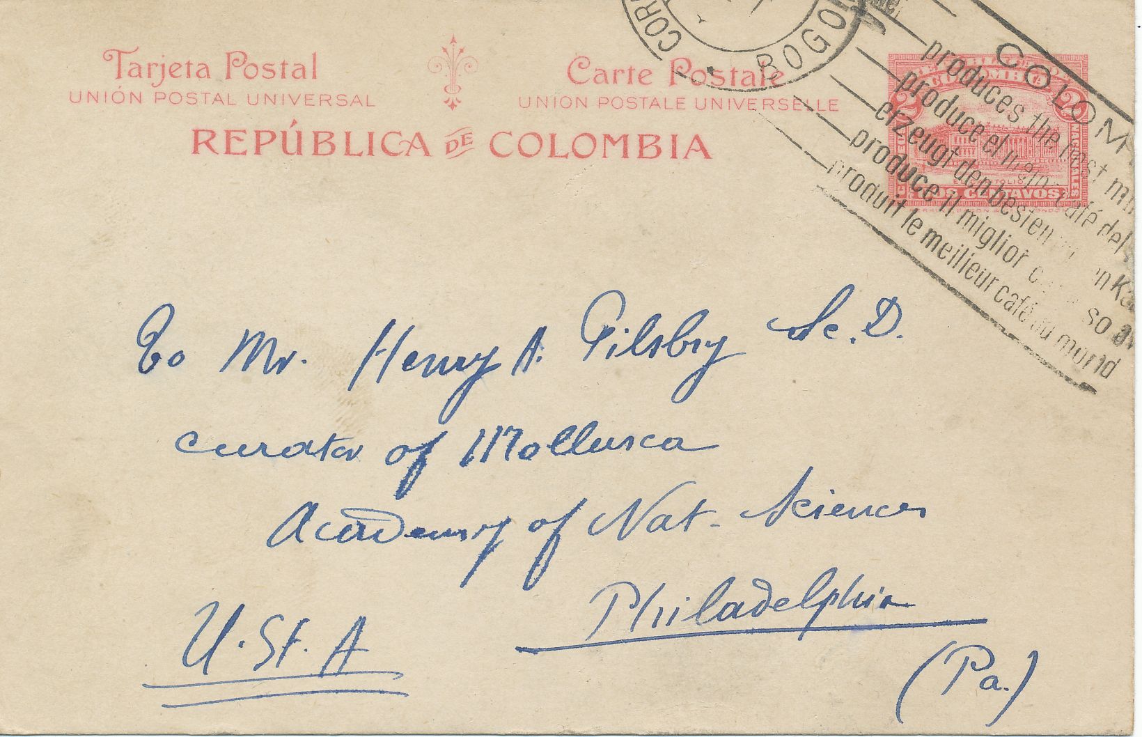 Y la última esta tarjeta dirigida desde Bogota a Philadelphia el día 27 de mayo del año 1937.-