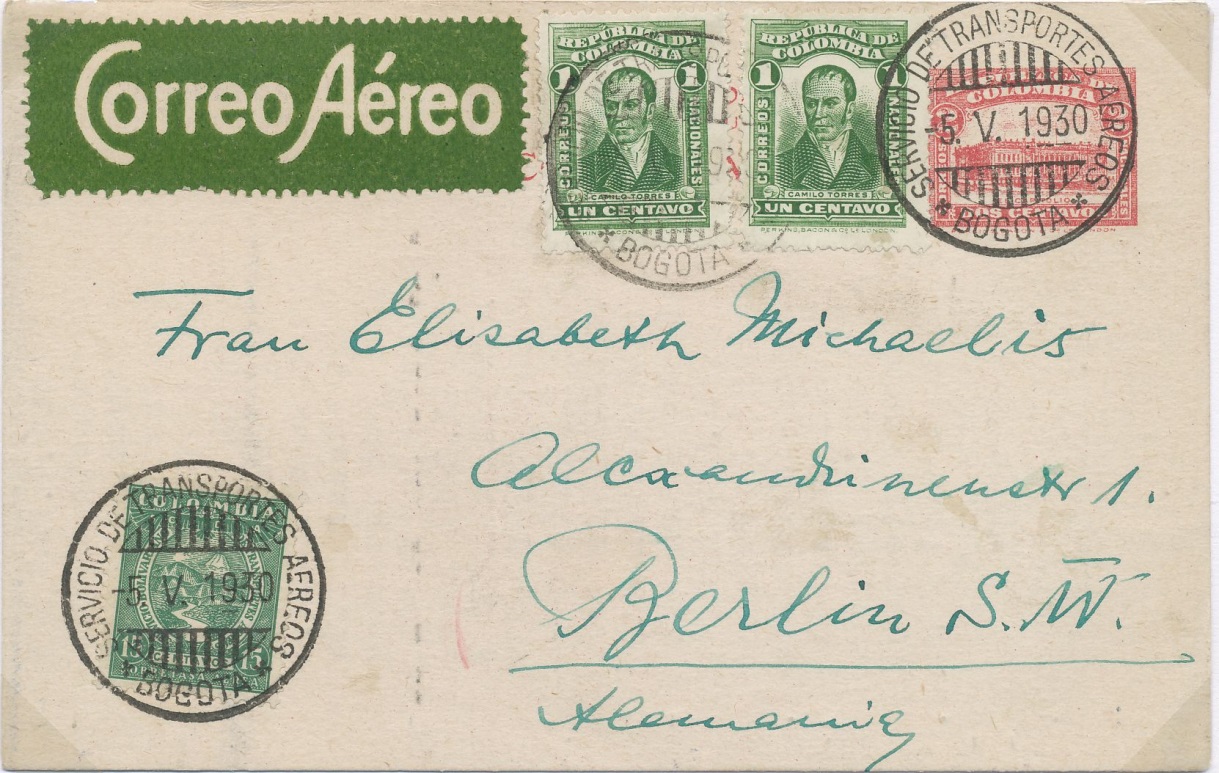 Tarjeta enviada desde Bogotá a Berlín el 5 de mayo de 1.930.-
