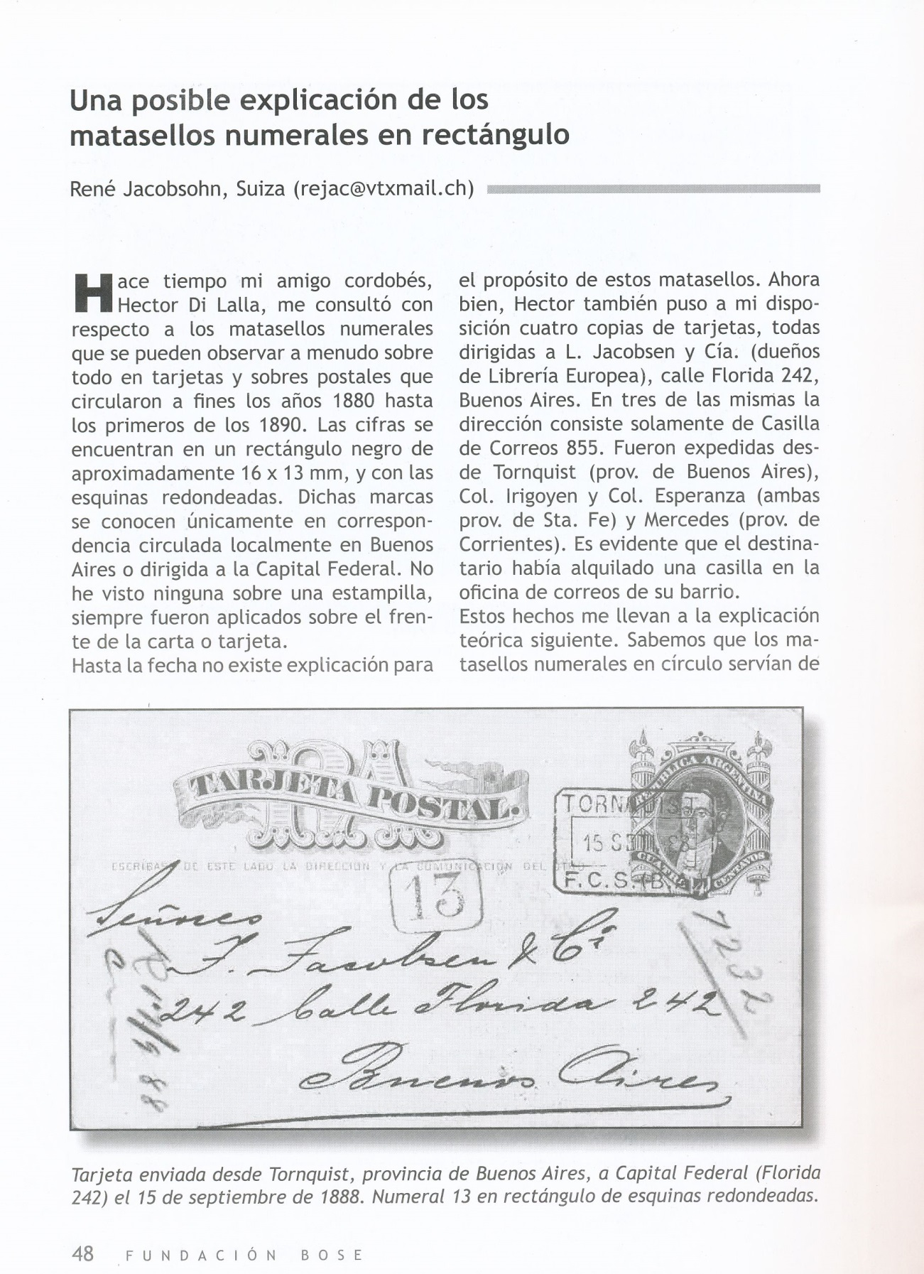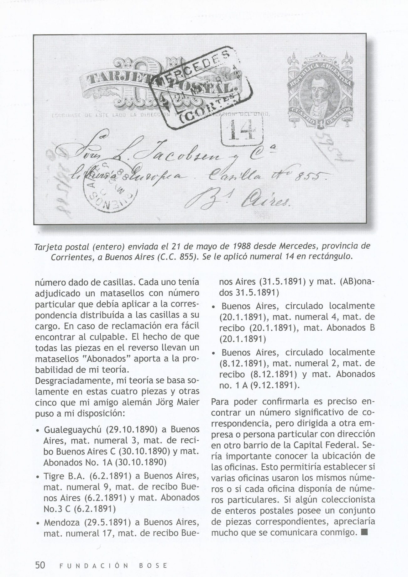 La Fundación Bose, es uno de los clubs filatélicos más importantes de América, de ella son socios, los mejores historiadores filatélicos de Argentina.