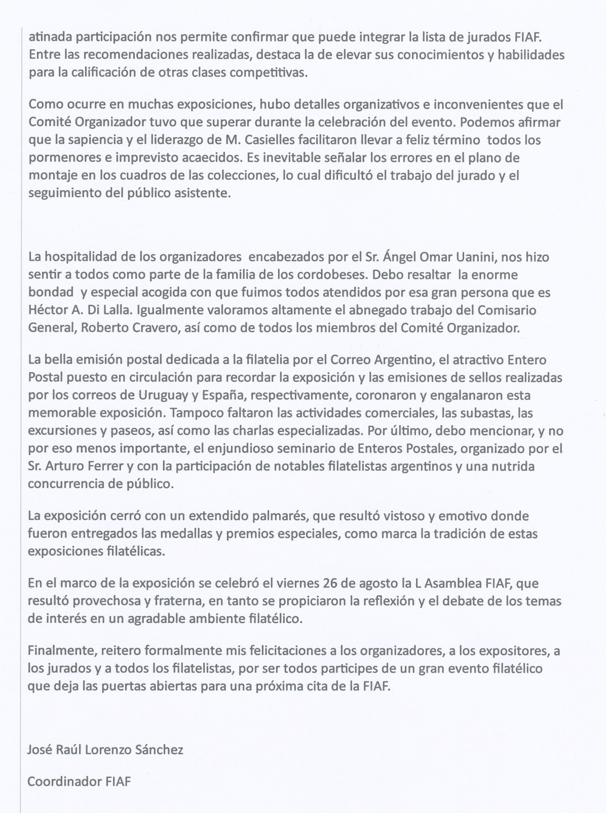 Adjunto el informe presentado por el Coordinador FIAF el Cubano José Raúl Lorenzo.