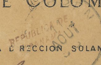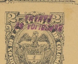 Cuño sobre la palabra “Colombia”. Cuño sobre el sello.-