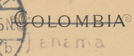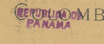 Sobrecarga “Panama” sobre el nombre de la Nación tachado. Sello sin sobrecarga