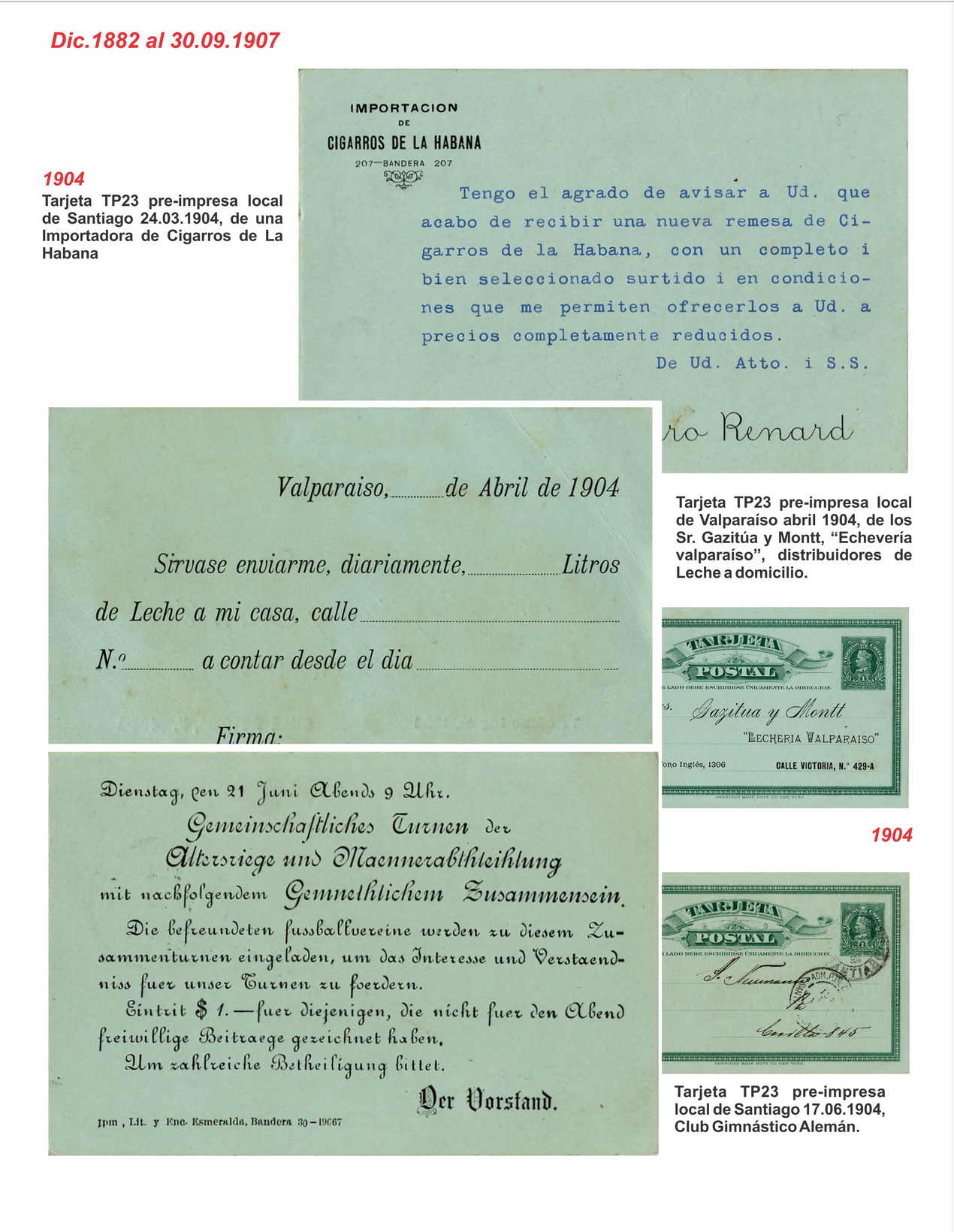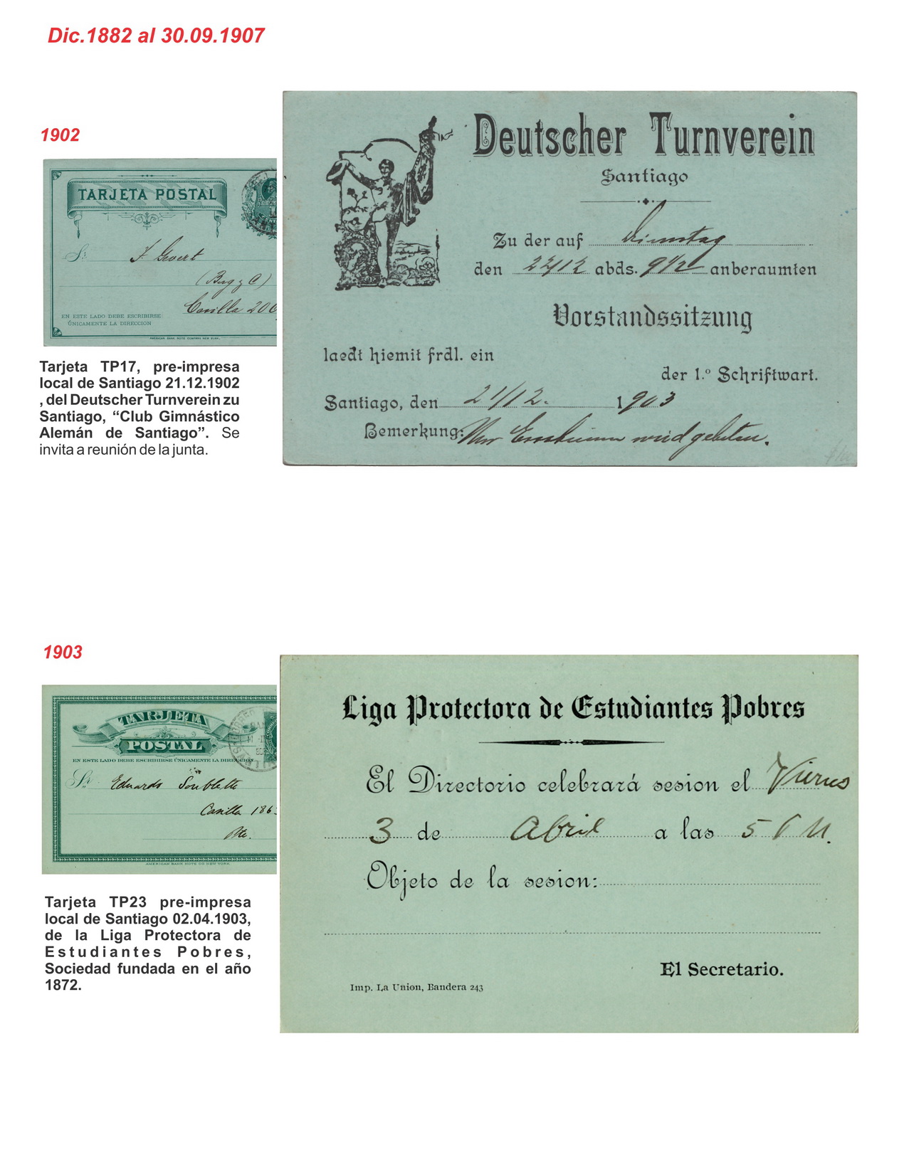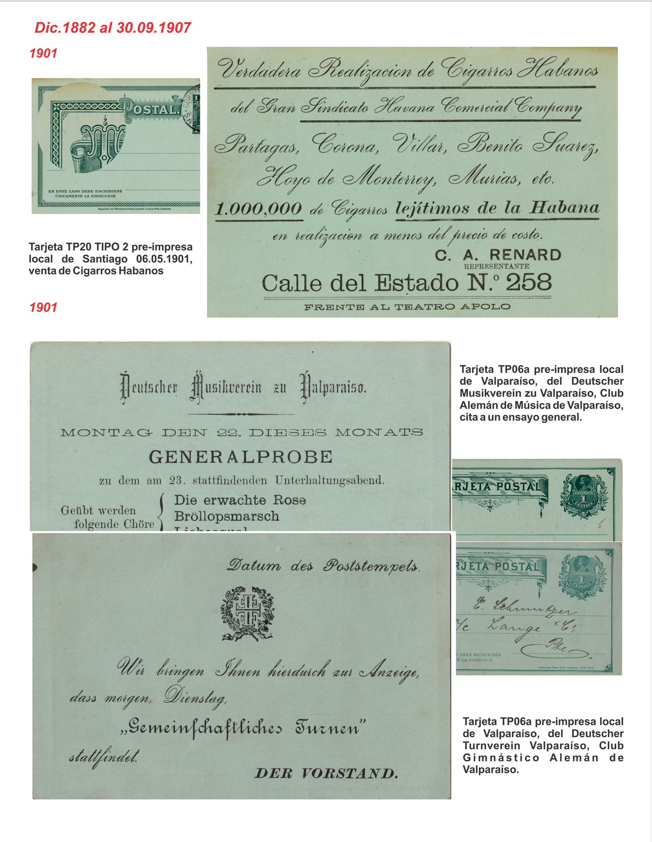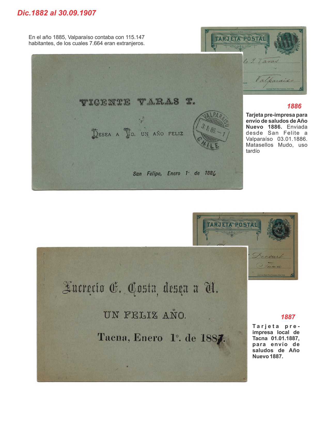 La presente exposición pretende mostrar la actividad social, cultural y comercial de Chile entre los años 1882 y 1920, a través del uso de los Enteros Postales con pre-impresión y que los particulares realizaban a fin de tratar de gozar de tarifas rebajadas.