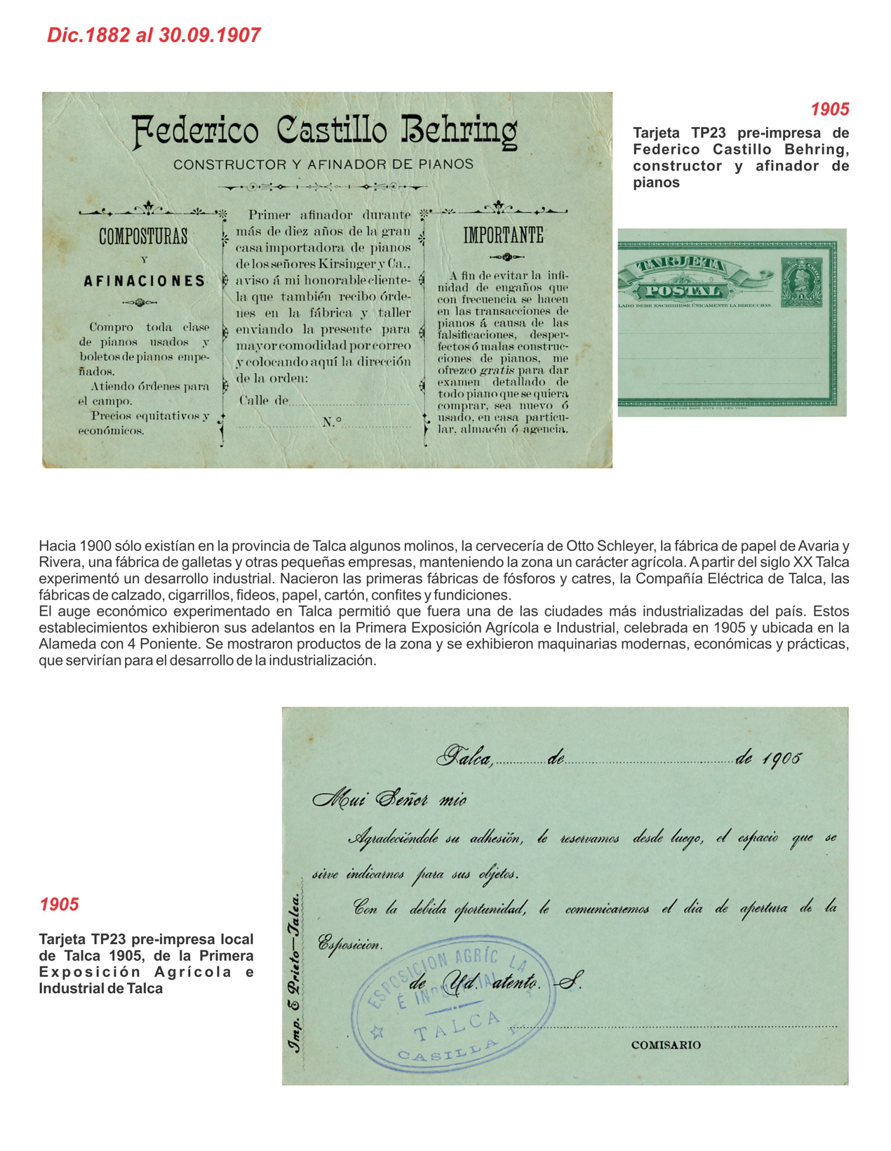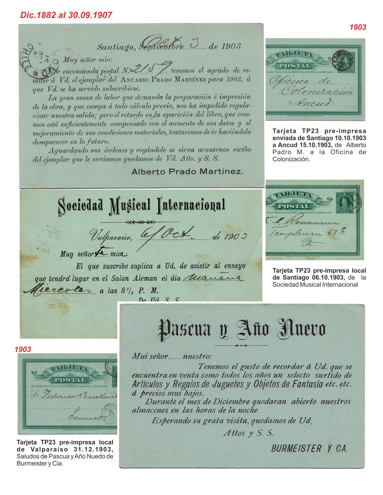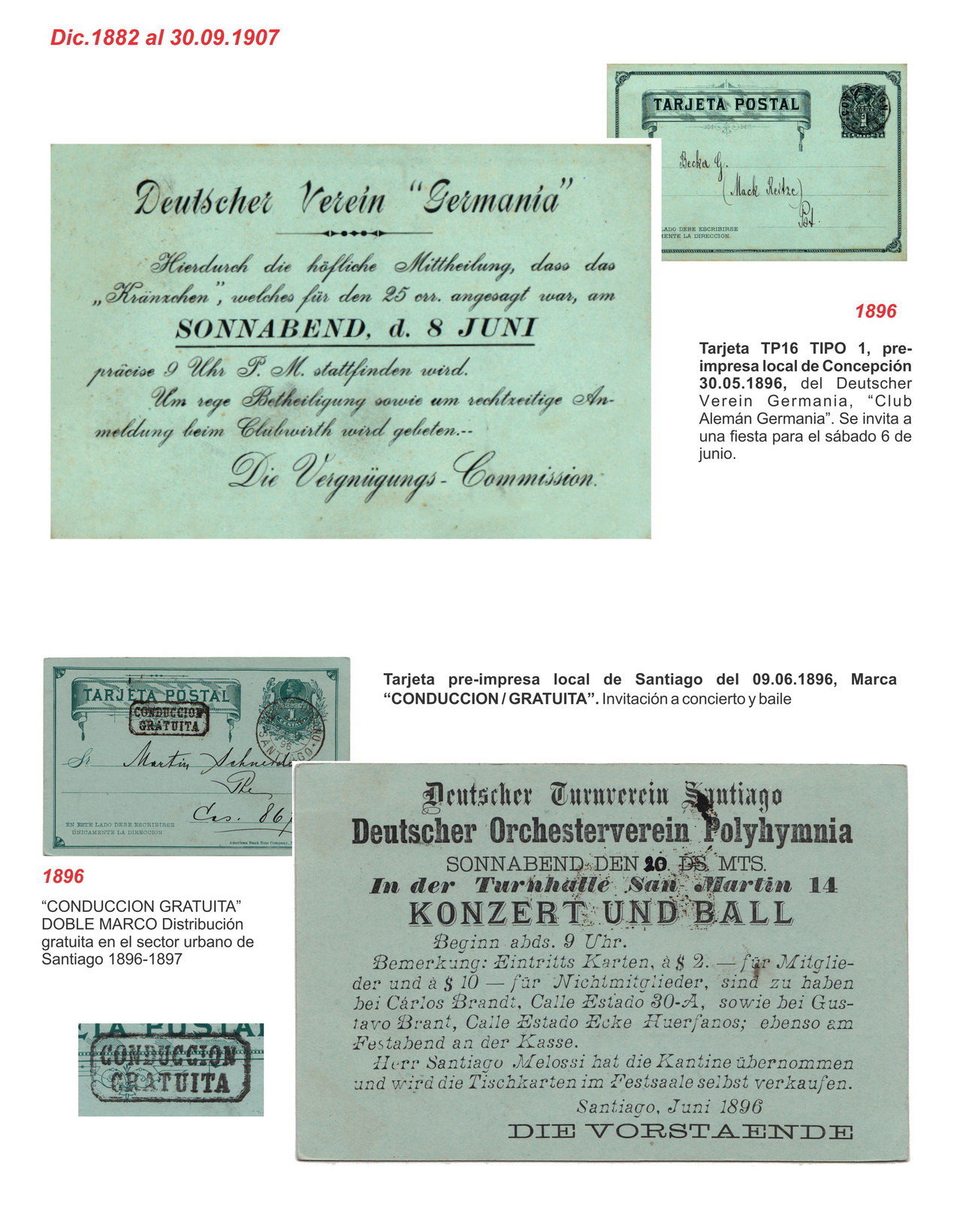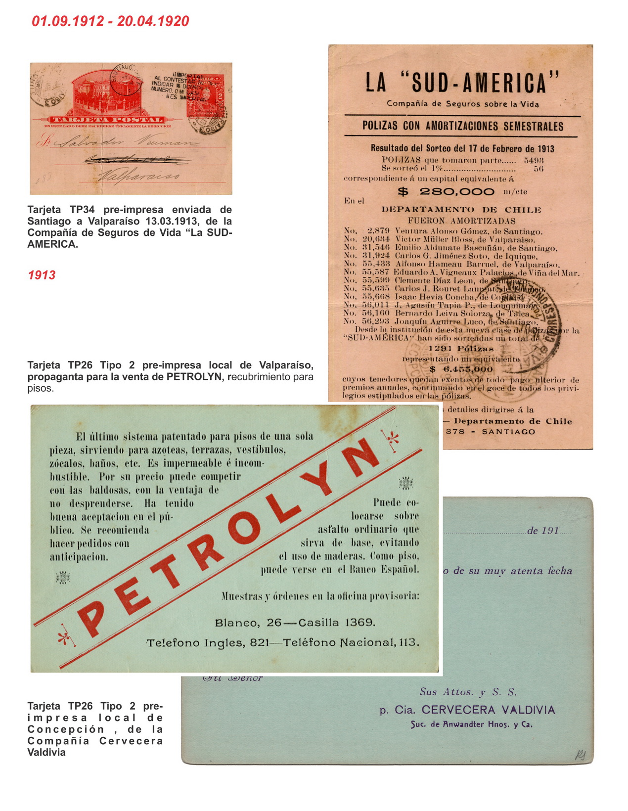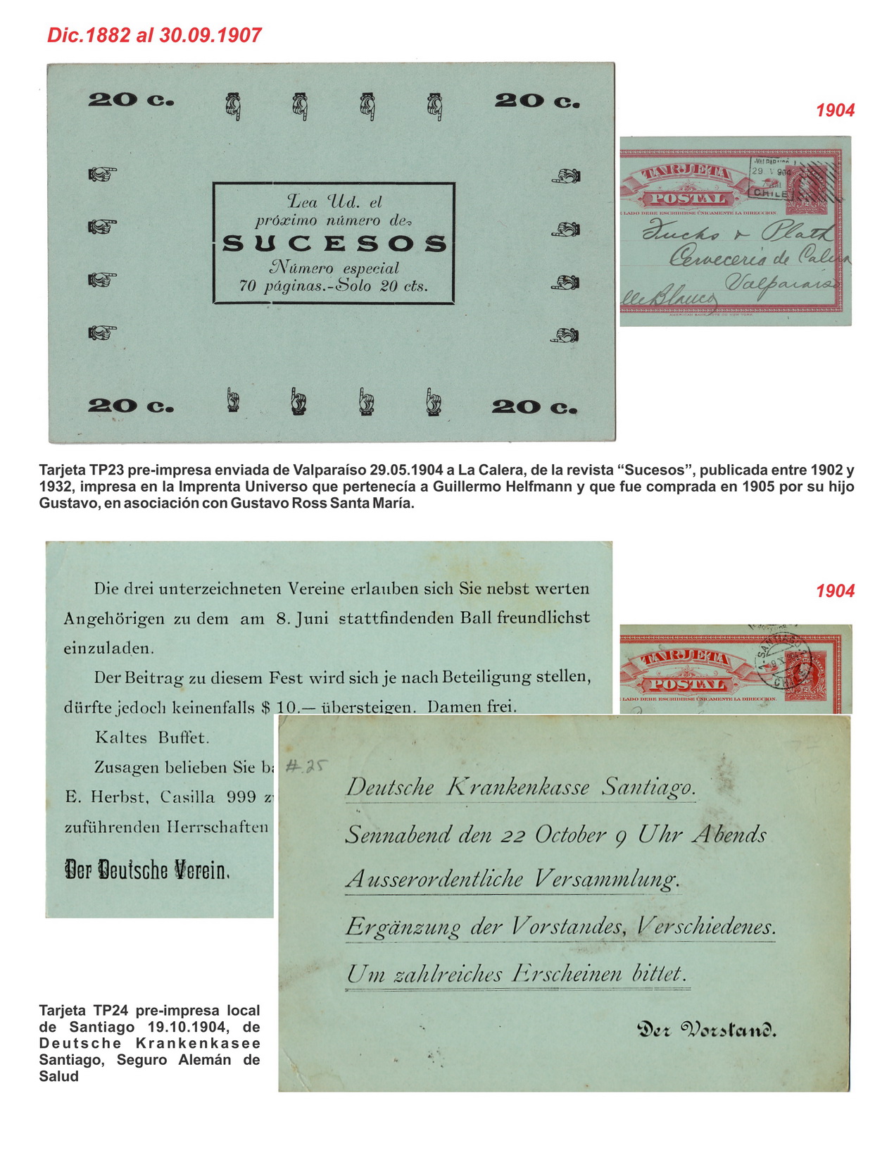 La presente exposición pretende mostrar la actividad social, cultural y comercial de Chile entre los años 1882 y 1920, a través del uso de los Enteros Postales con pre-impresión y que los particulares realizaban a fin de tratar de gozar de tarifas rebajadas.