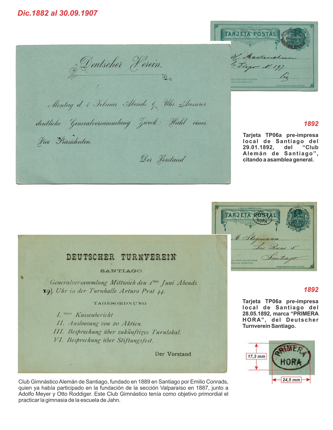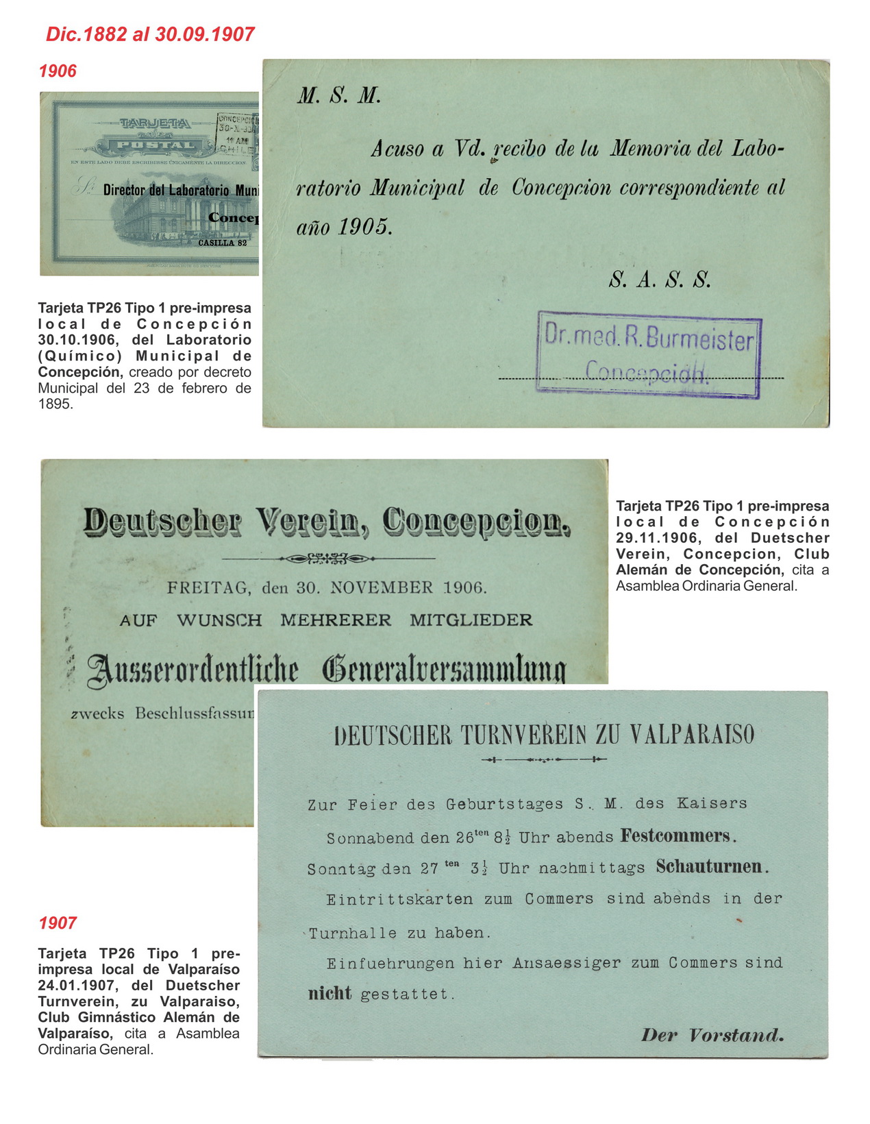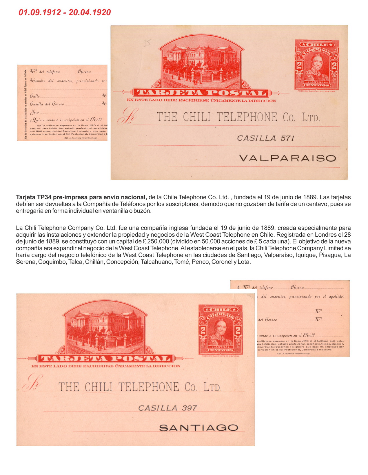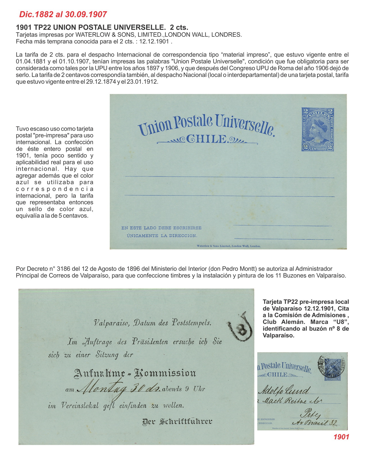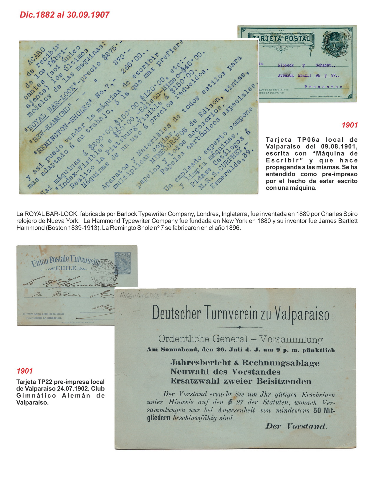 La presente exposición pretende mostrar la actividad social, cultural y comercial de Chile entre los años 1882 y 1920, a través del uso de los Enteros Postales con pre-impresión y que los particulares realizaban a fin de tratar de gozar de tarifas rebajadas.