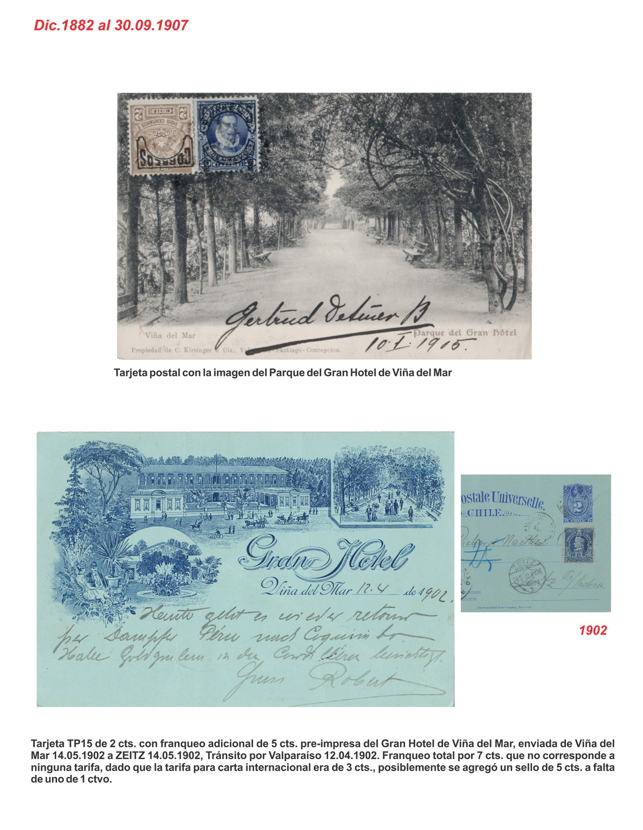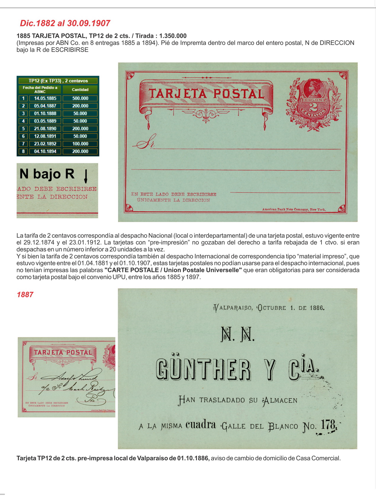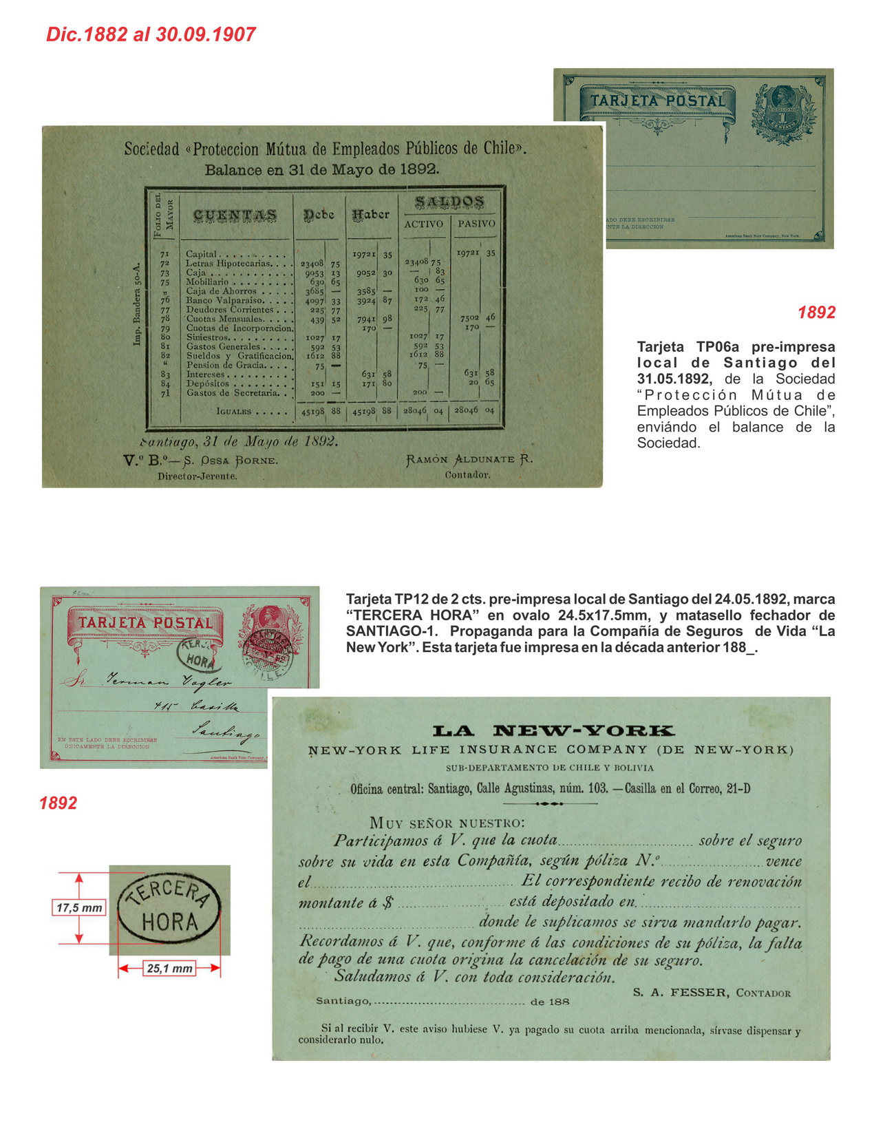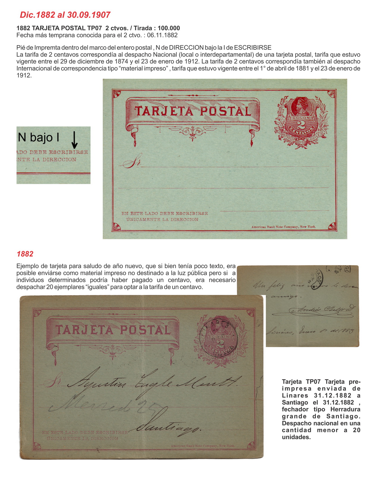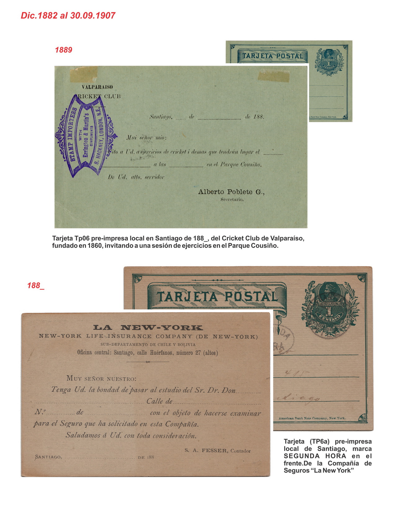 CAPÍTULO 1 : Dic.1882 al 30.09.1907 ( 24 años) - Tarifa nacional 1 ctvo, Internacional 2 cts.