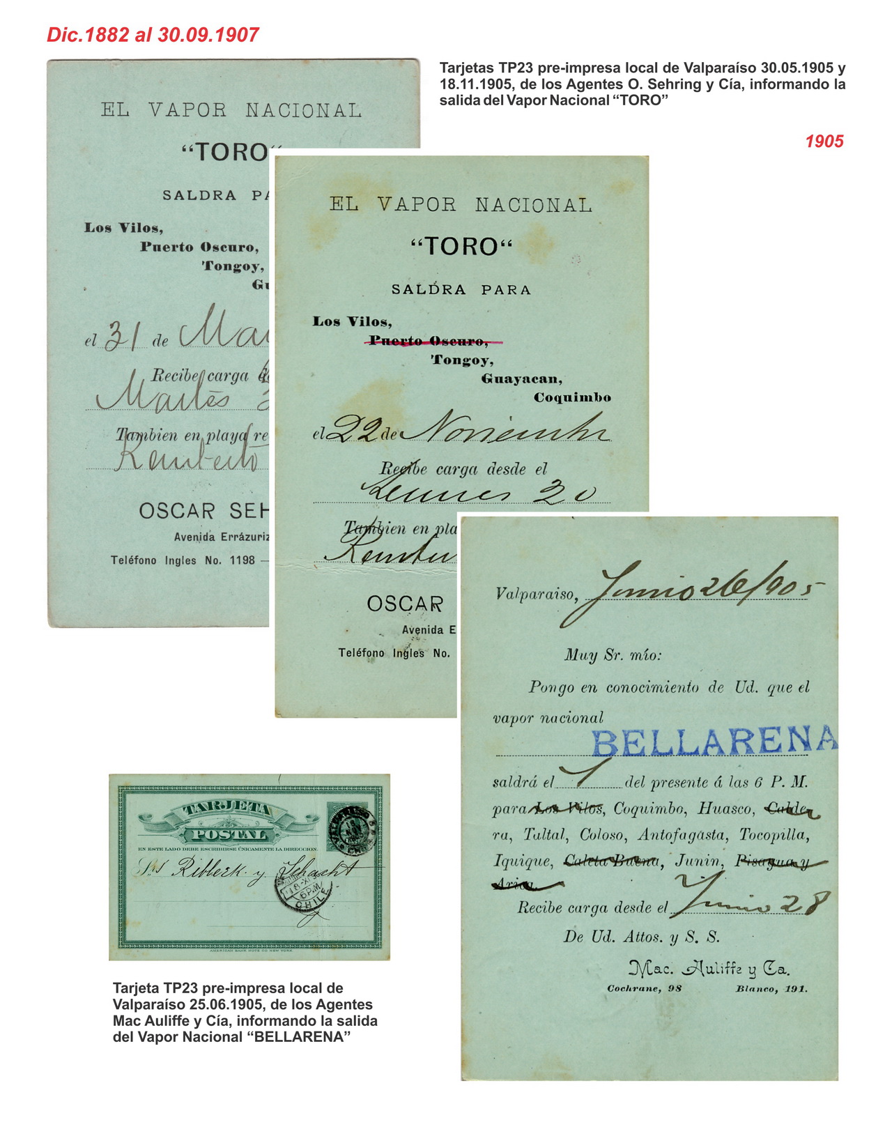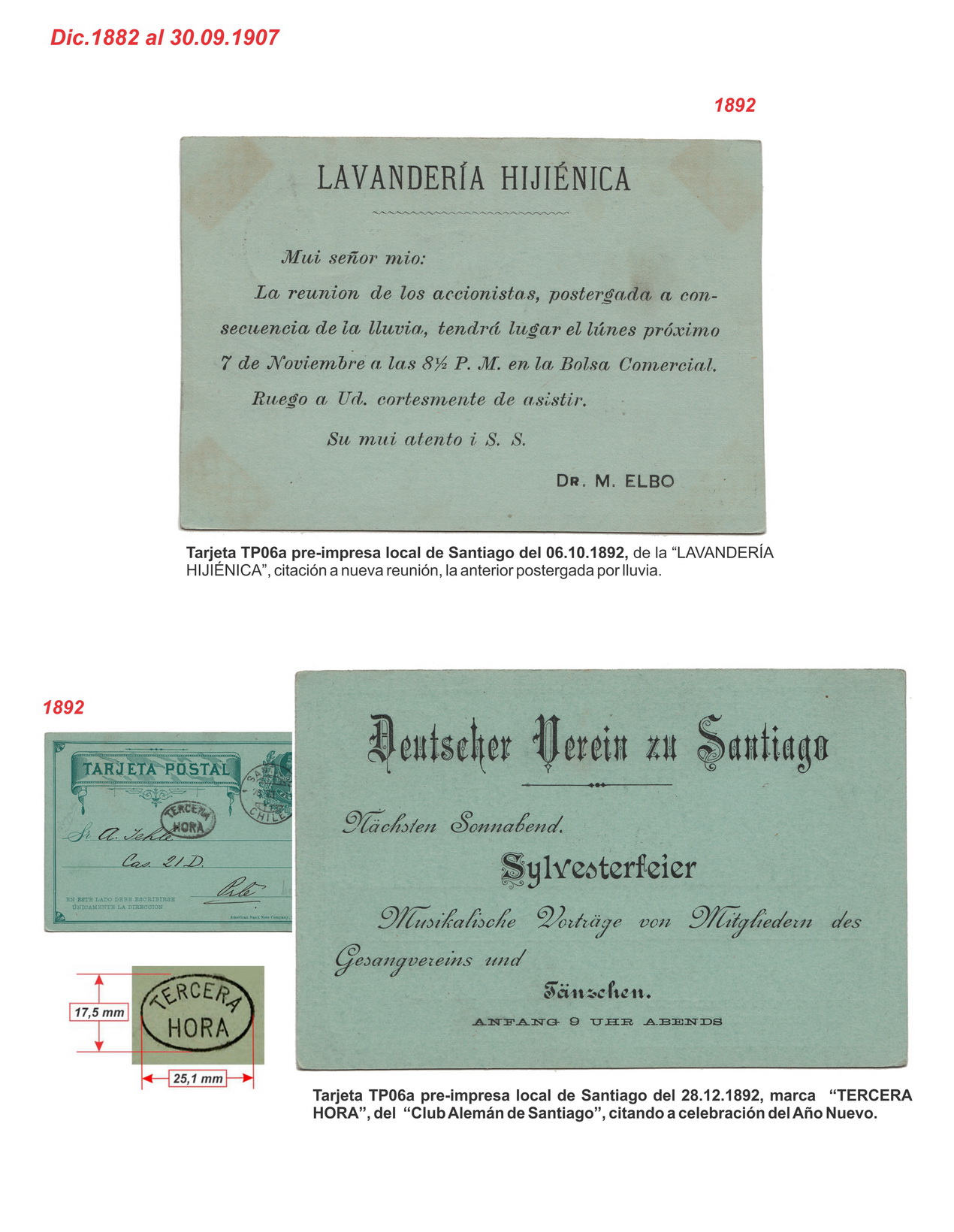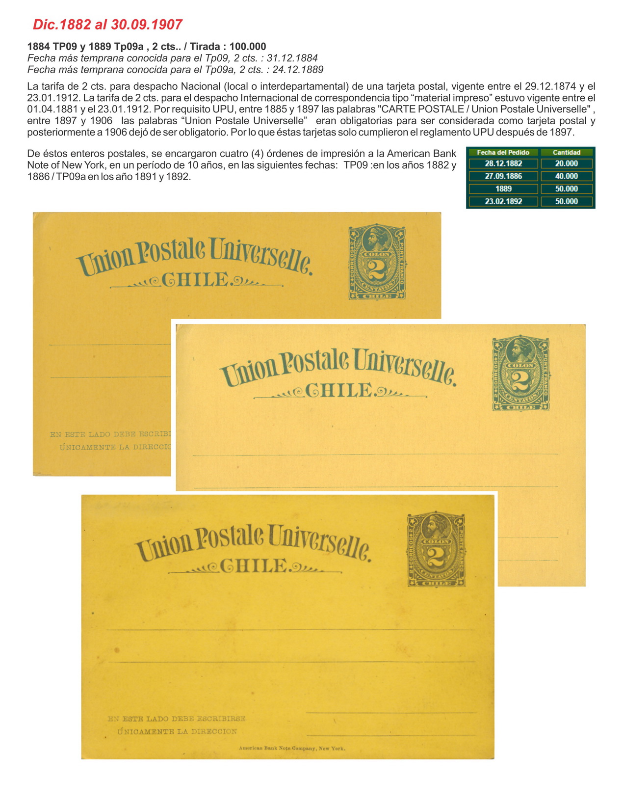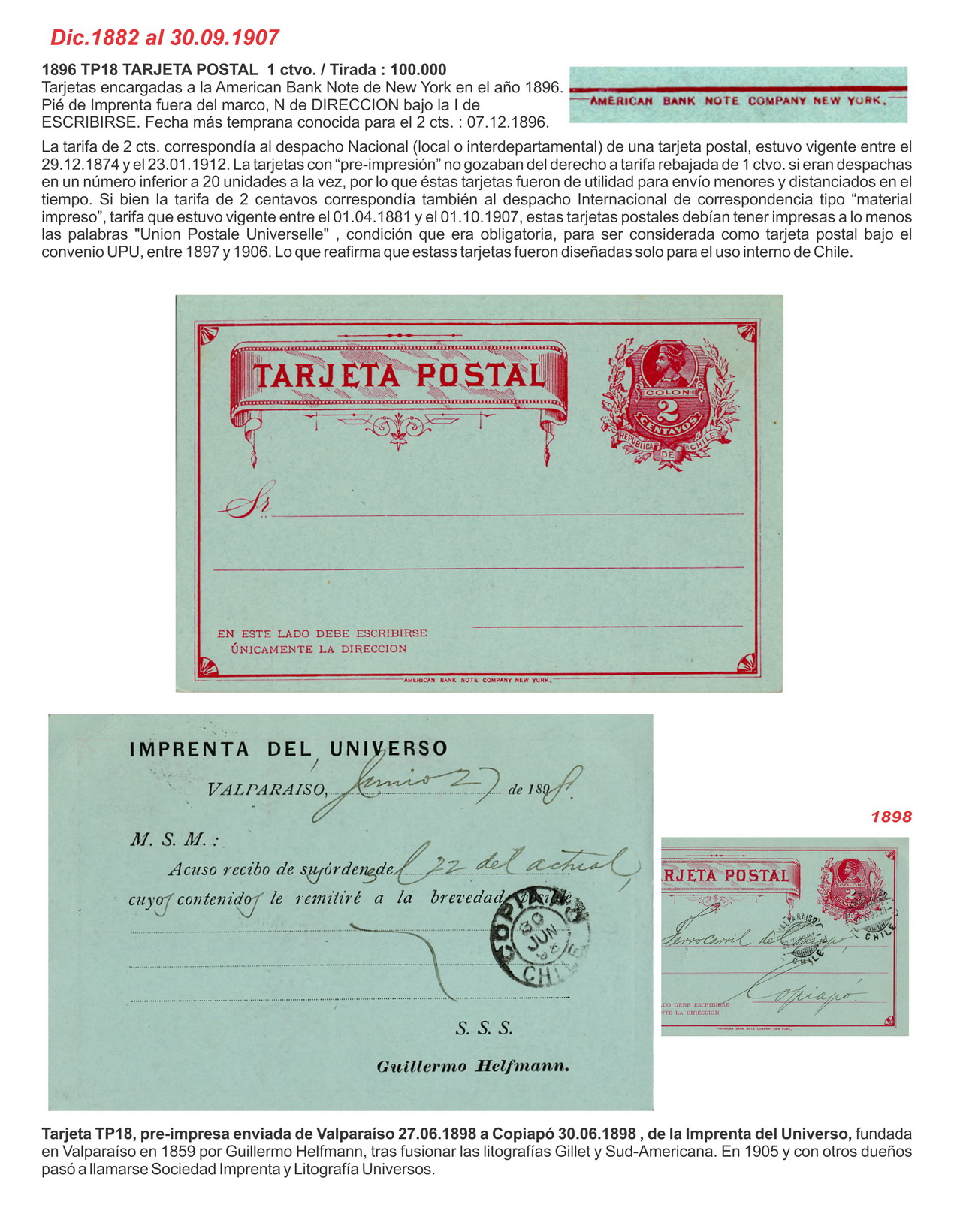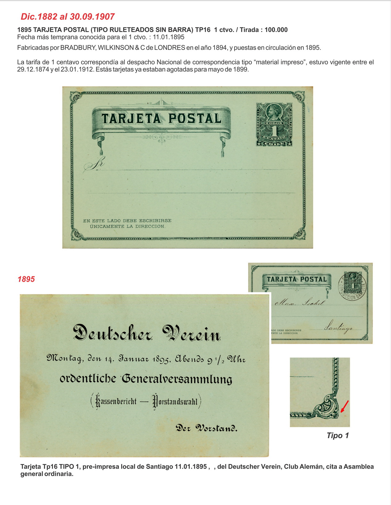 CAPÍTULO 1 : Dic.1882 al 30.09.1907 ( 24 años) - Tarifa nacional 1 ctvo, Internacional 2 cts.