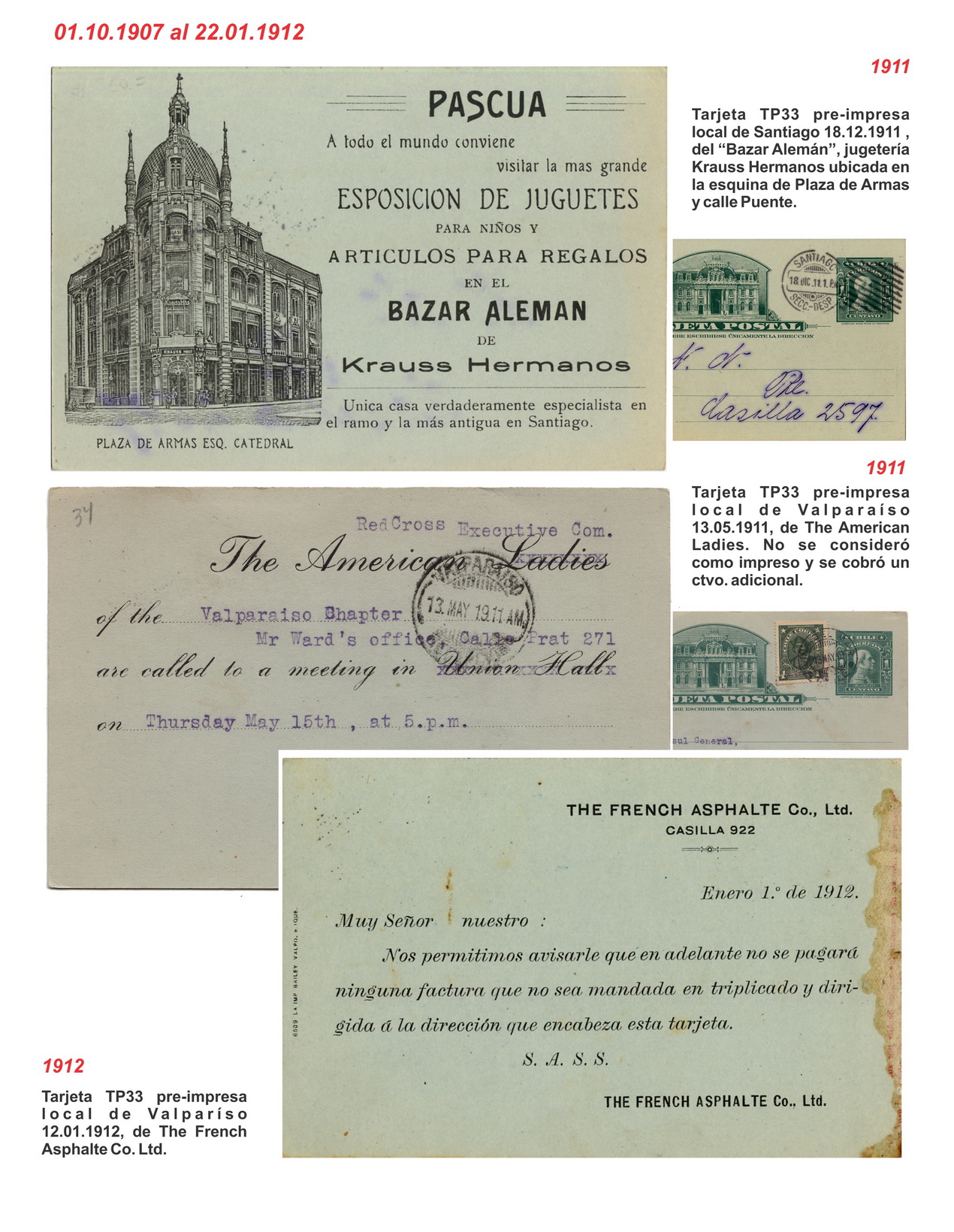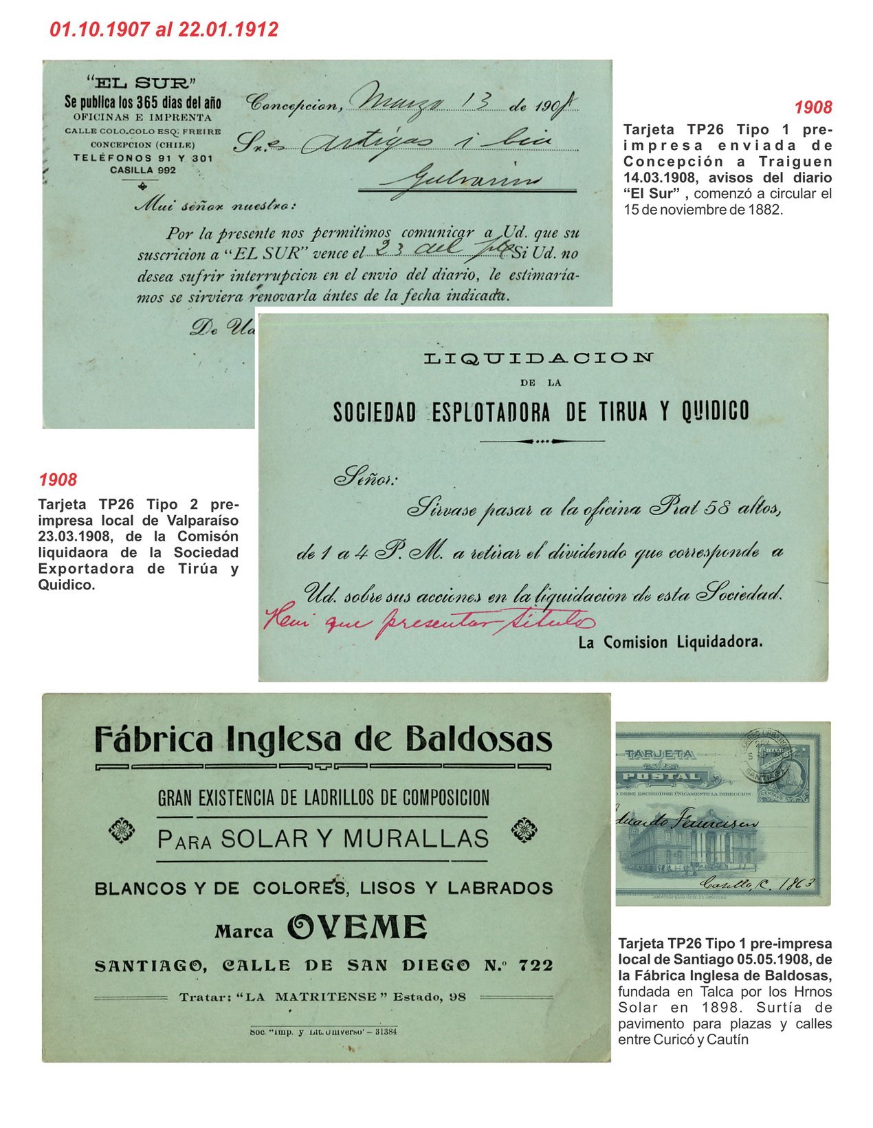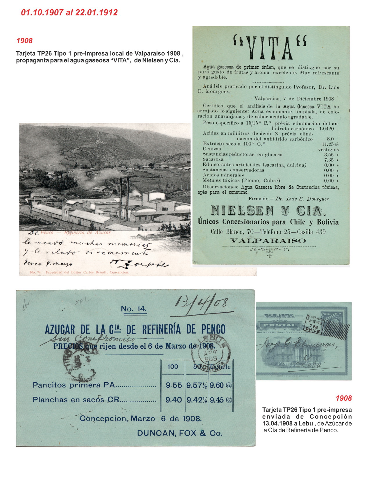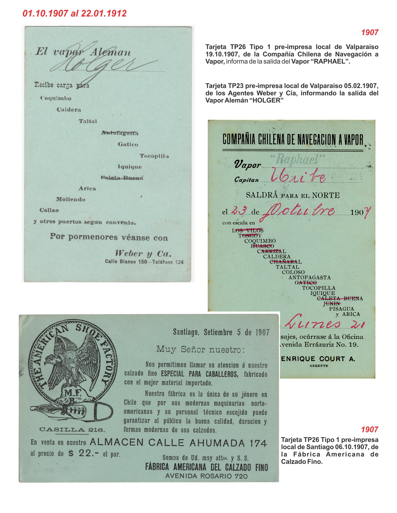 CAPÍTULO 2 : 01.10.1907 al 22.01.1912 (4 años 3 meses) - Tarifa nacional 1 ctvo, Internacional 3 cts.