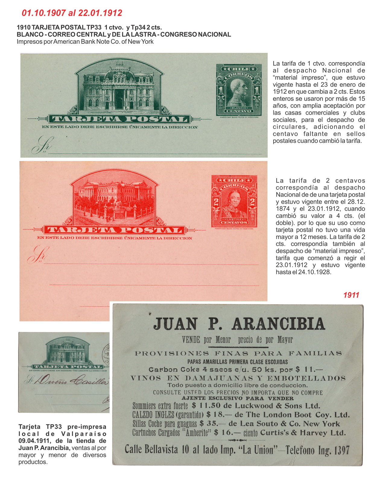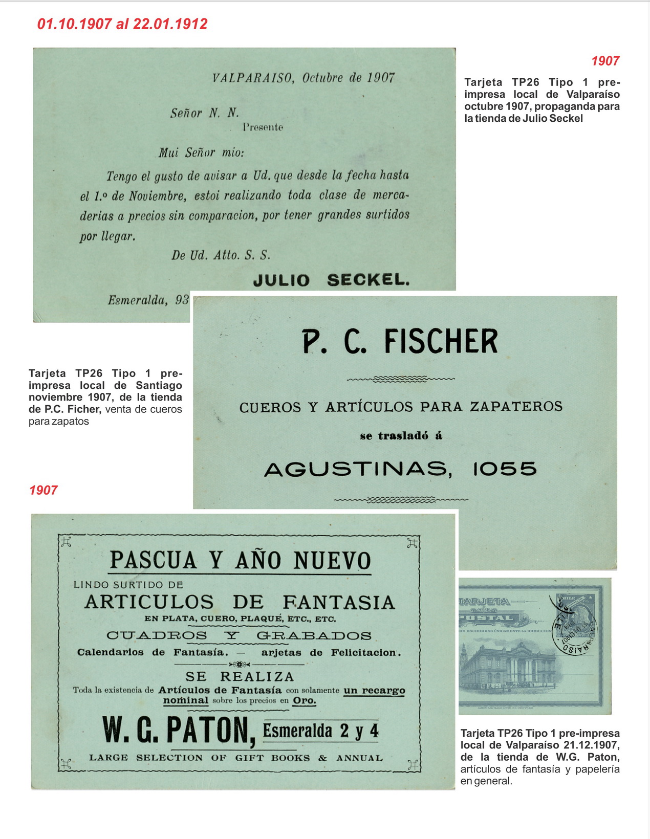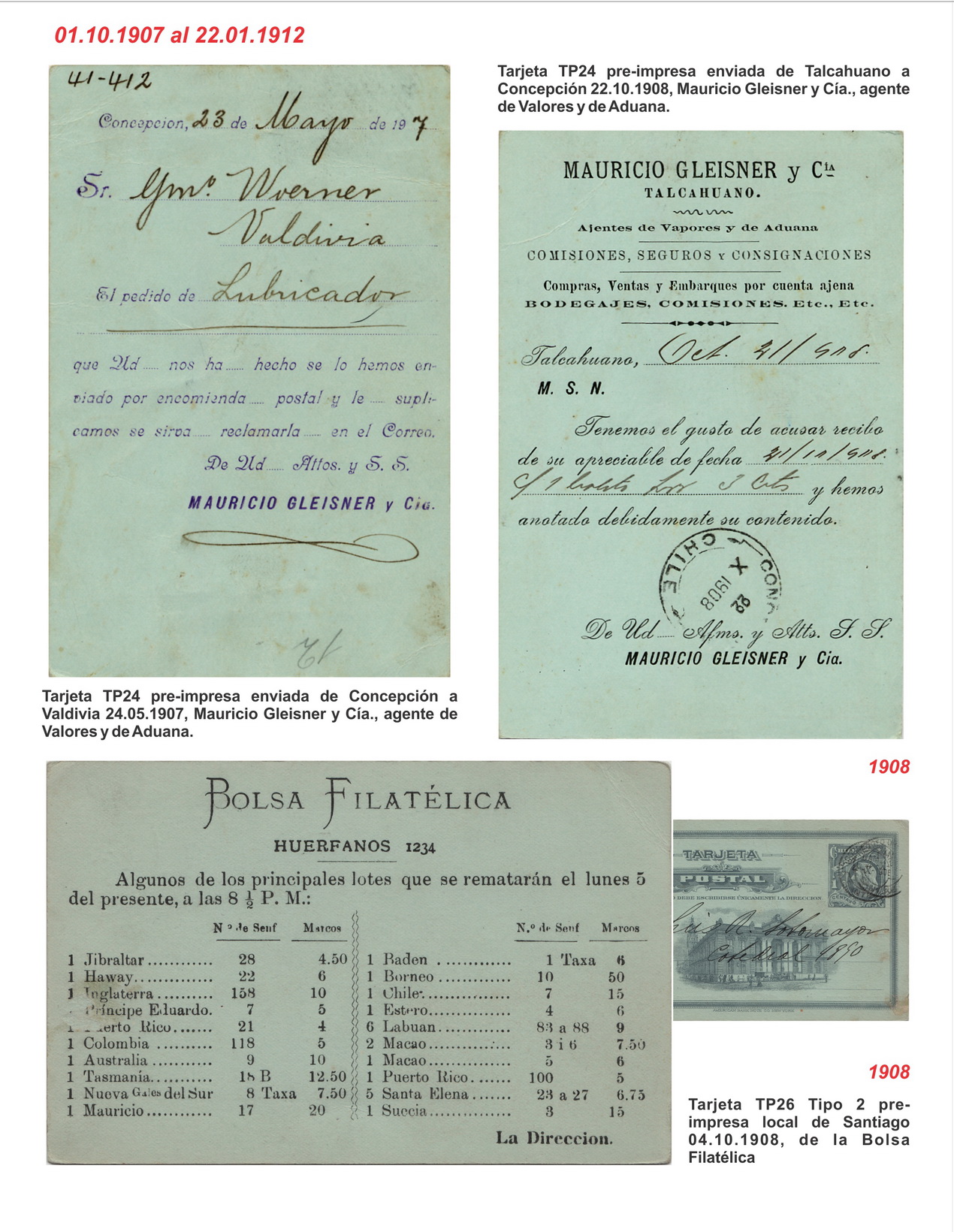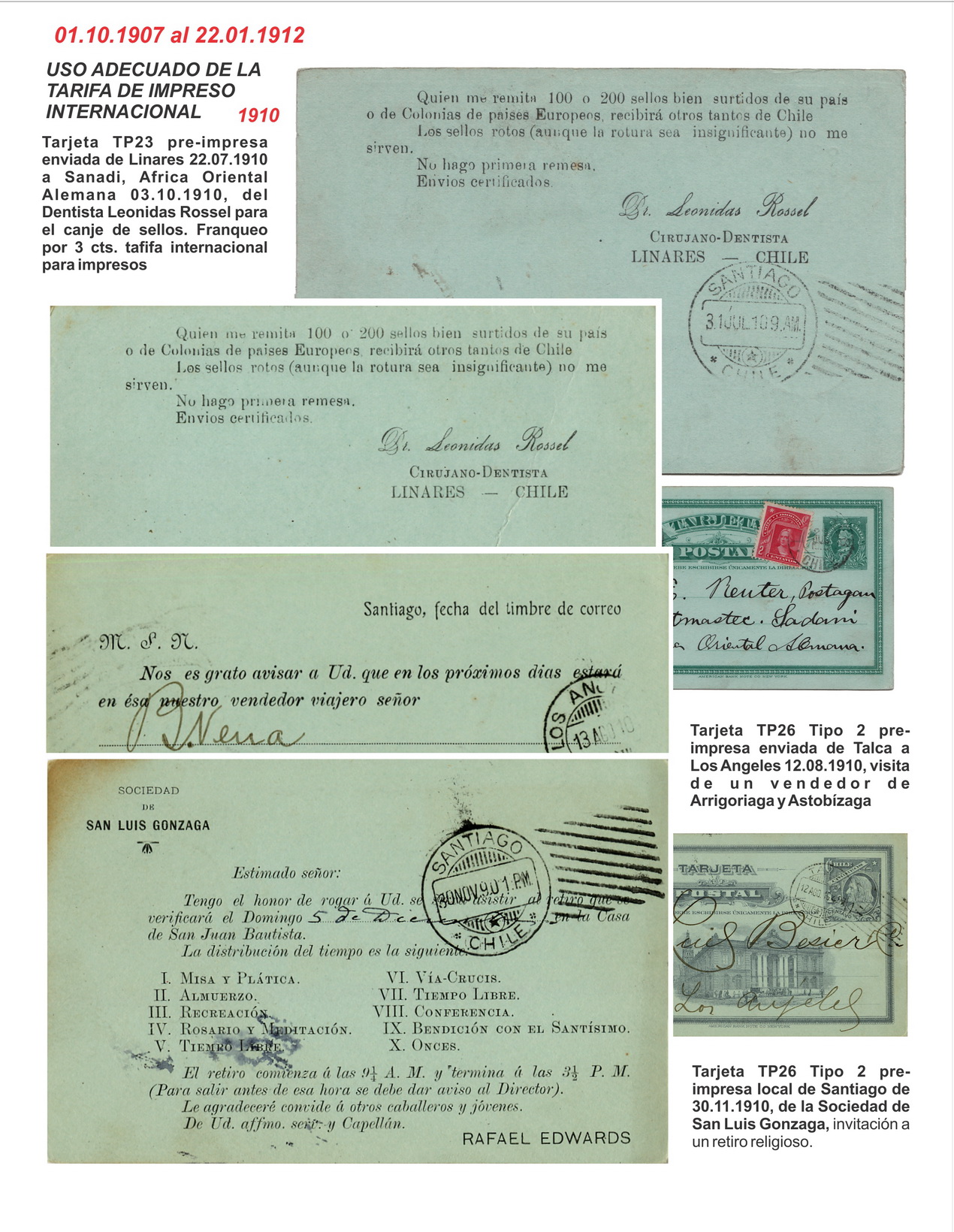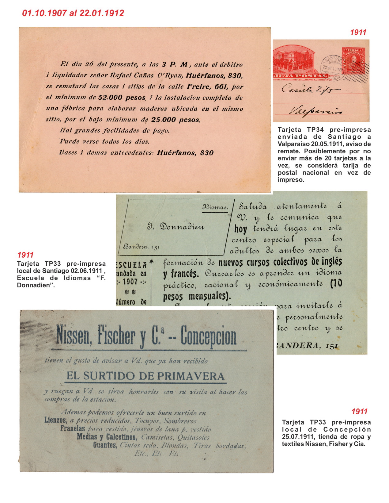 CAPÍTULO 2 : 01.10.1907 al 22.01.1912 (4 años 3 meses) - Tarifa nacional 1 ctvo, Internacional 3 cts.