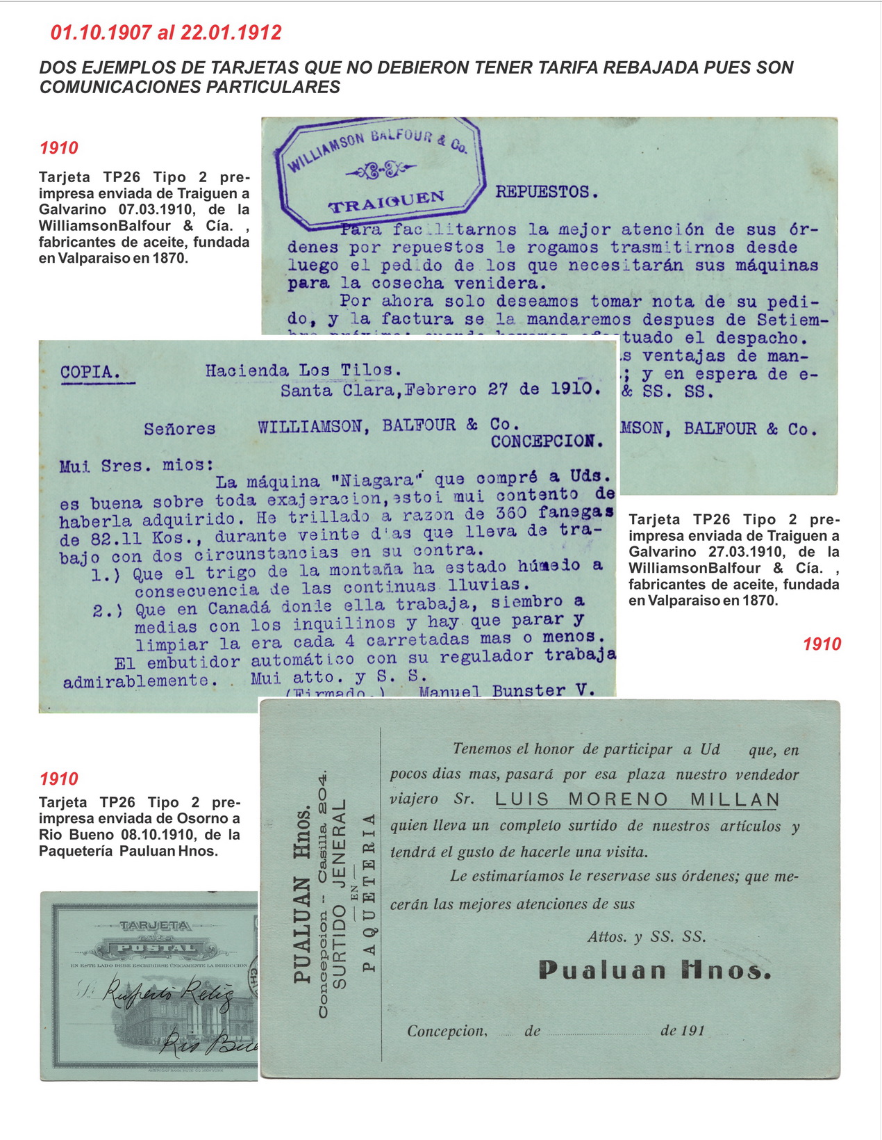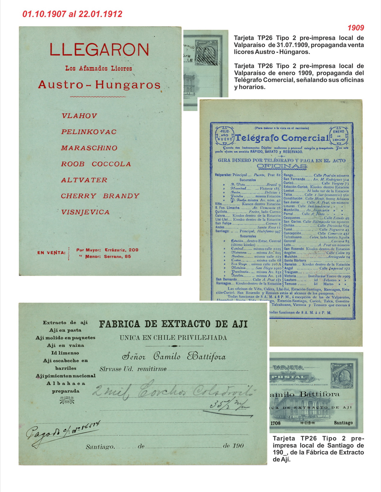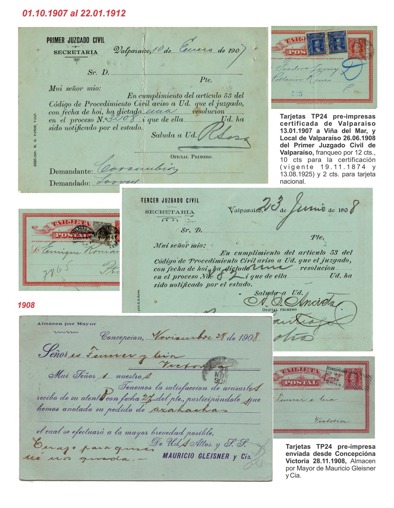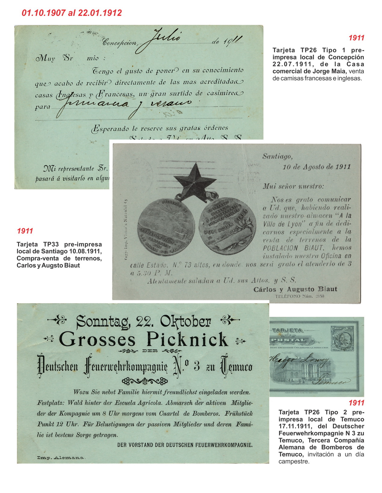 CAPÍTULO 2 : 01.10.1907 al 22.01.1912 (4 años 3 meses) - Tarifa nacional 1 ctvo, Internacional 3 cts.