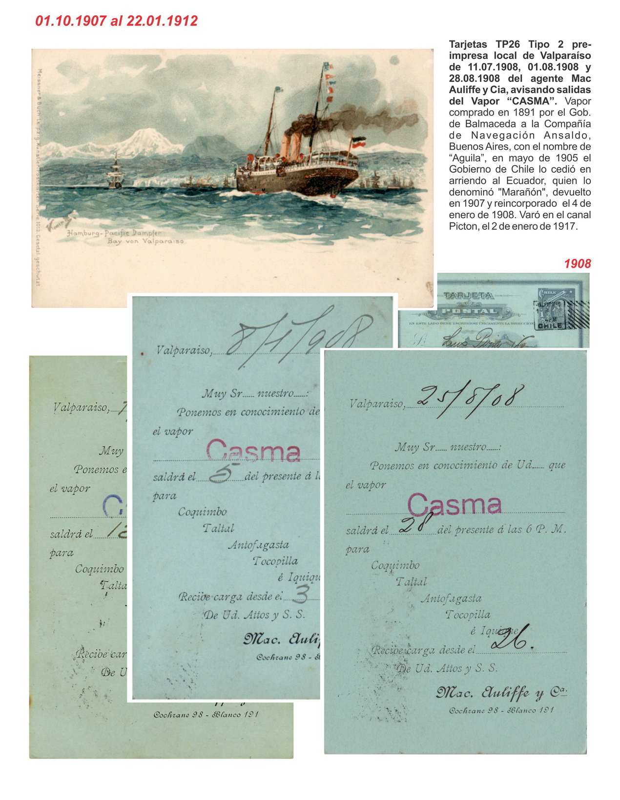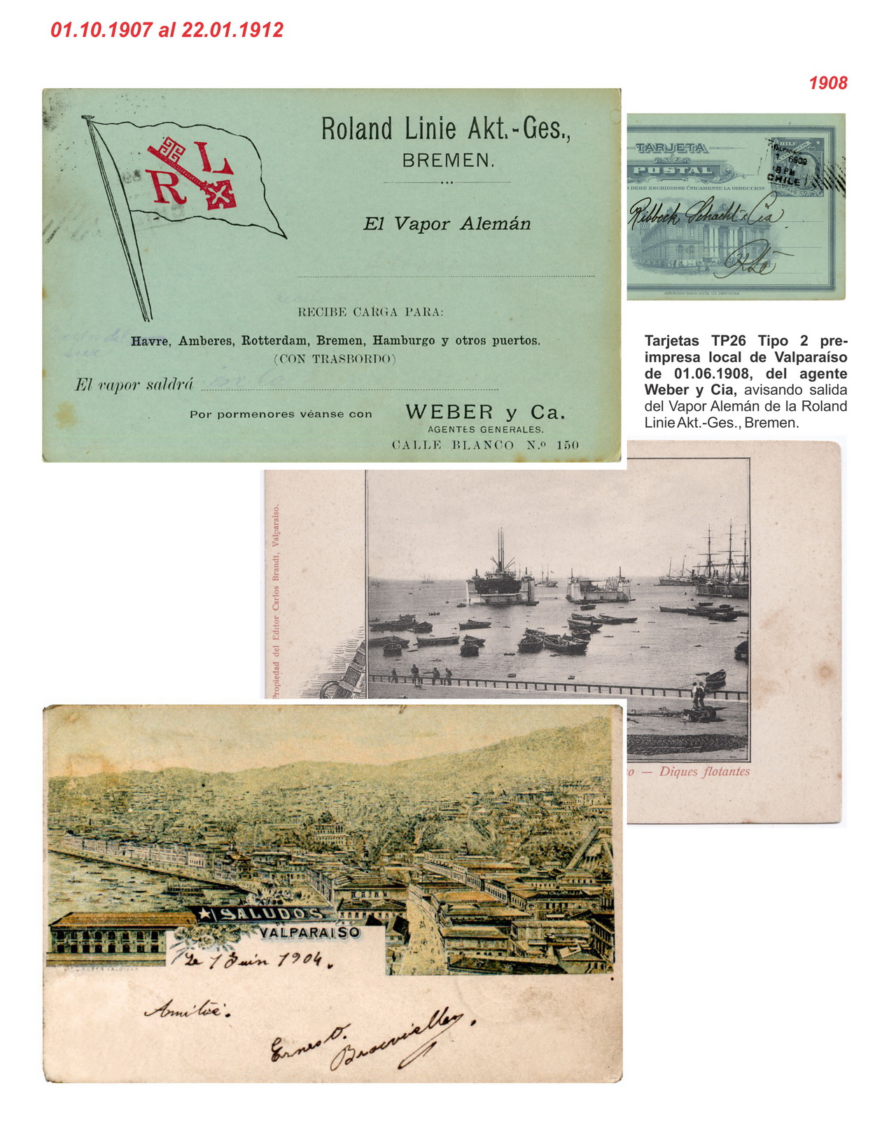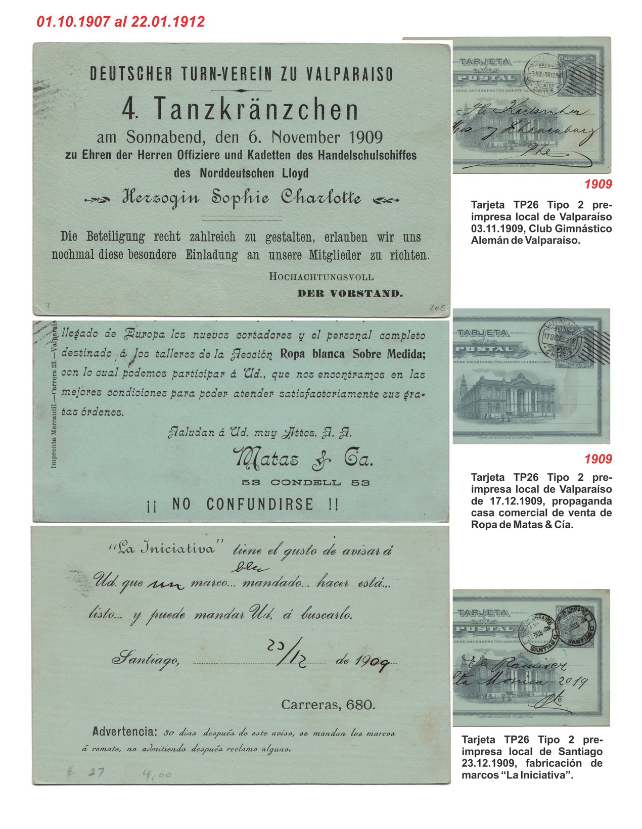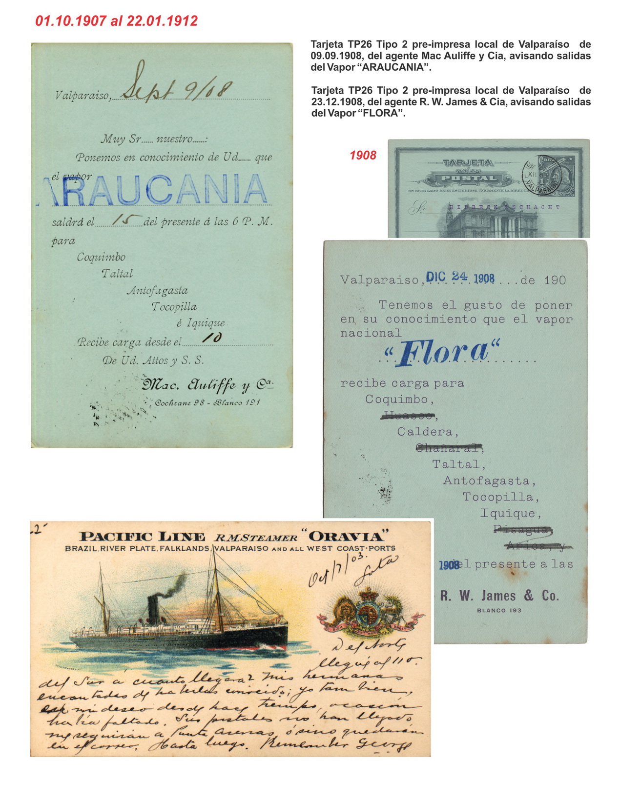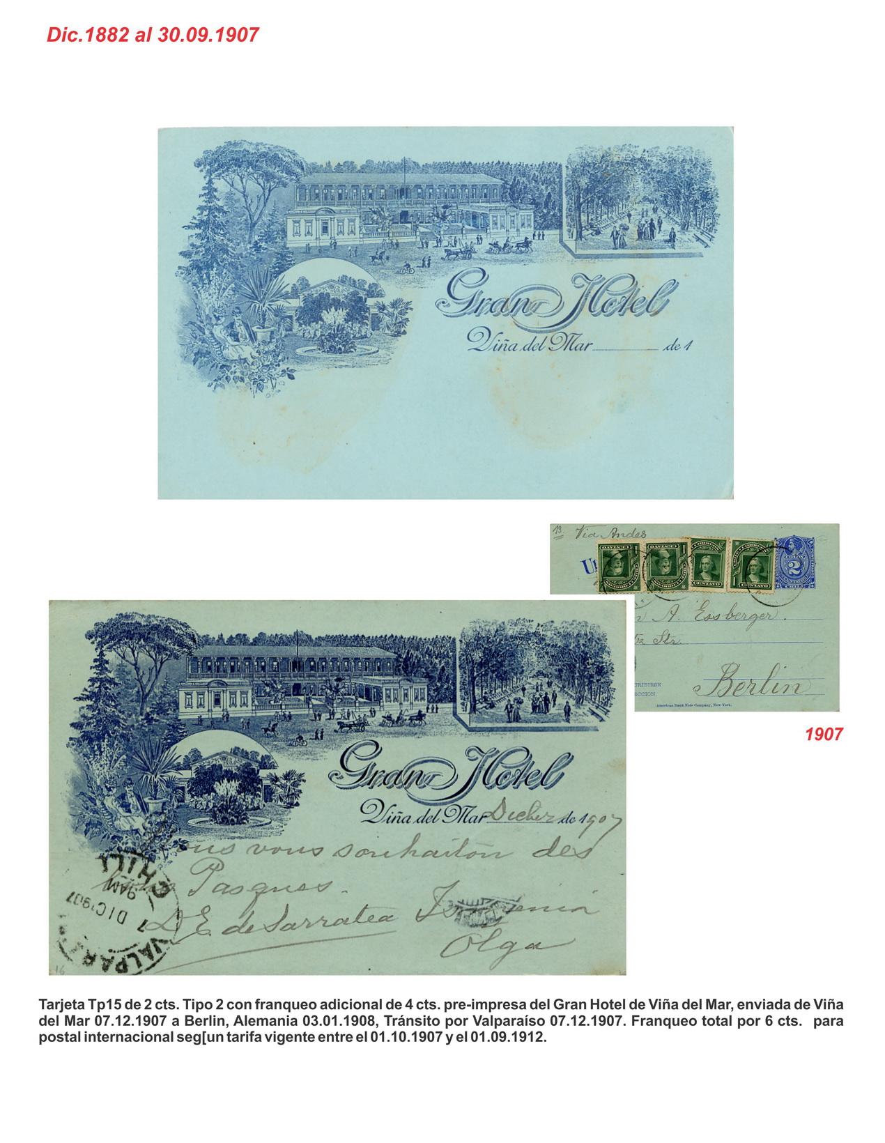CAPÍTULO 2 : 01.10.1907 al 22.01.1912 (4 años 3 meses) - Tarifa nacional 1 ctvo, Internacional 3 cts.