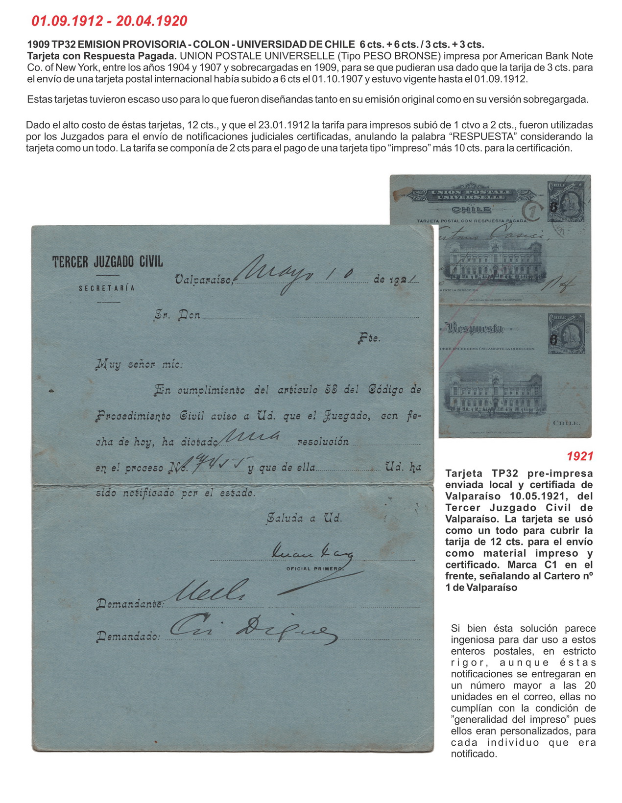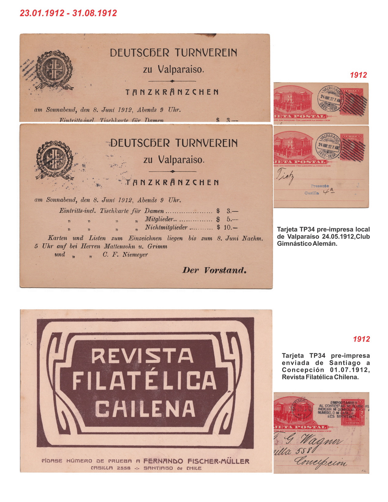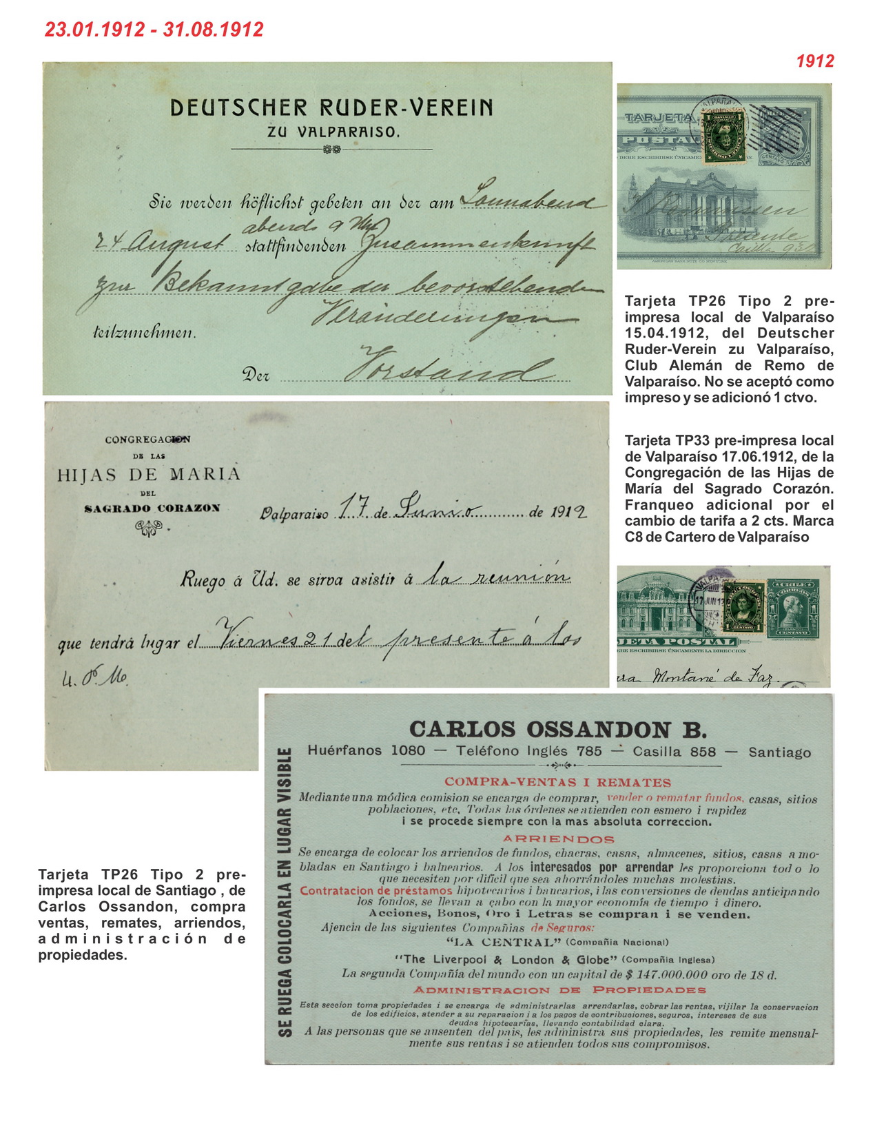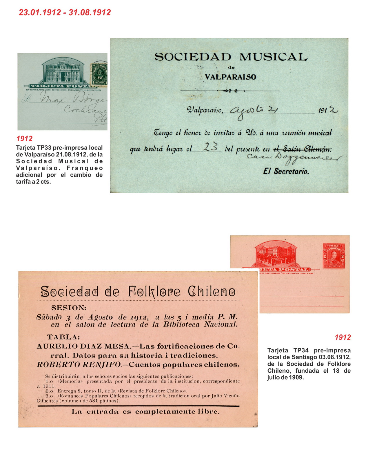 CAPÍTULO 3 : 23.01.1912 al 31.08.1912 (3 meses) - Tarifa nacional 2 cts, Internacional 3 cts.