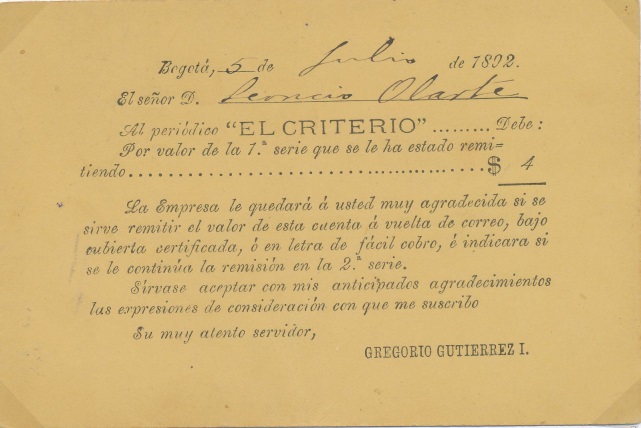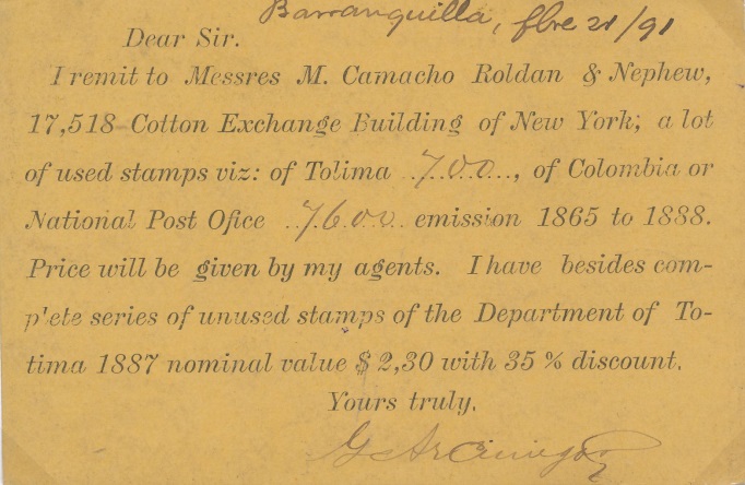 Entre las tarjetas Colombianas, esta es la primera emisión sobre la que se realizaron impresiones privadas. El dato es interesante ya que significa que el entero tuvo una gran difusión: