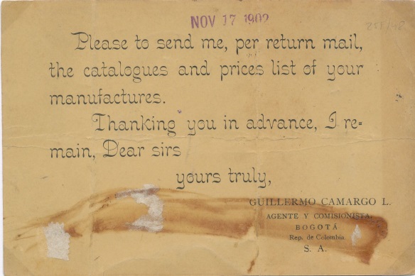 Tarjeta enviada a Chicago el 12 de julio de 1.890, desde Bogotá.-