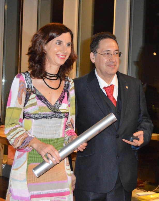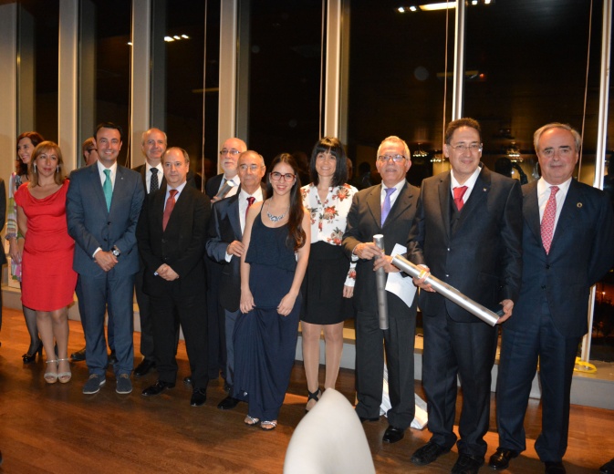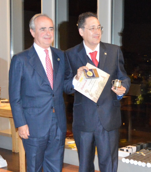 Al término de la entrega de Medallas y Diplomas a los asistentes a la Cena de Palmarés de la Exfilna, se procedió a la entrega de las Medallas de Fesofi y las del Ministerio de Fomento que el pasado 10 de julio concedió “El Consejo de la Orden Civil del Mérito Postal y de la Medalla al Mérito Filatélico”, que preside la Canciller Dña. Rosana Navarro Eras, Subsecretaria del Ministerio de Fomento. (La Medalla al Mérito Filatélico fue creada con el fin de estimular y recompensar la labor en orden a propagar la afición al coleccionismo de sellos de Correos). Concediéndole la Medalla de Plata Arturo Ferrer y la Medalla de Bronce a José Carlos Rodríguez Piñero (mi hijo), siendo la primera vez que se concede a Juveniles, la medalla la recogí en su nombre.