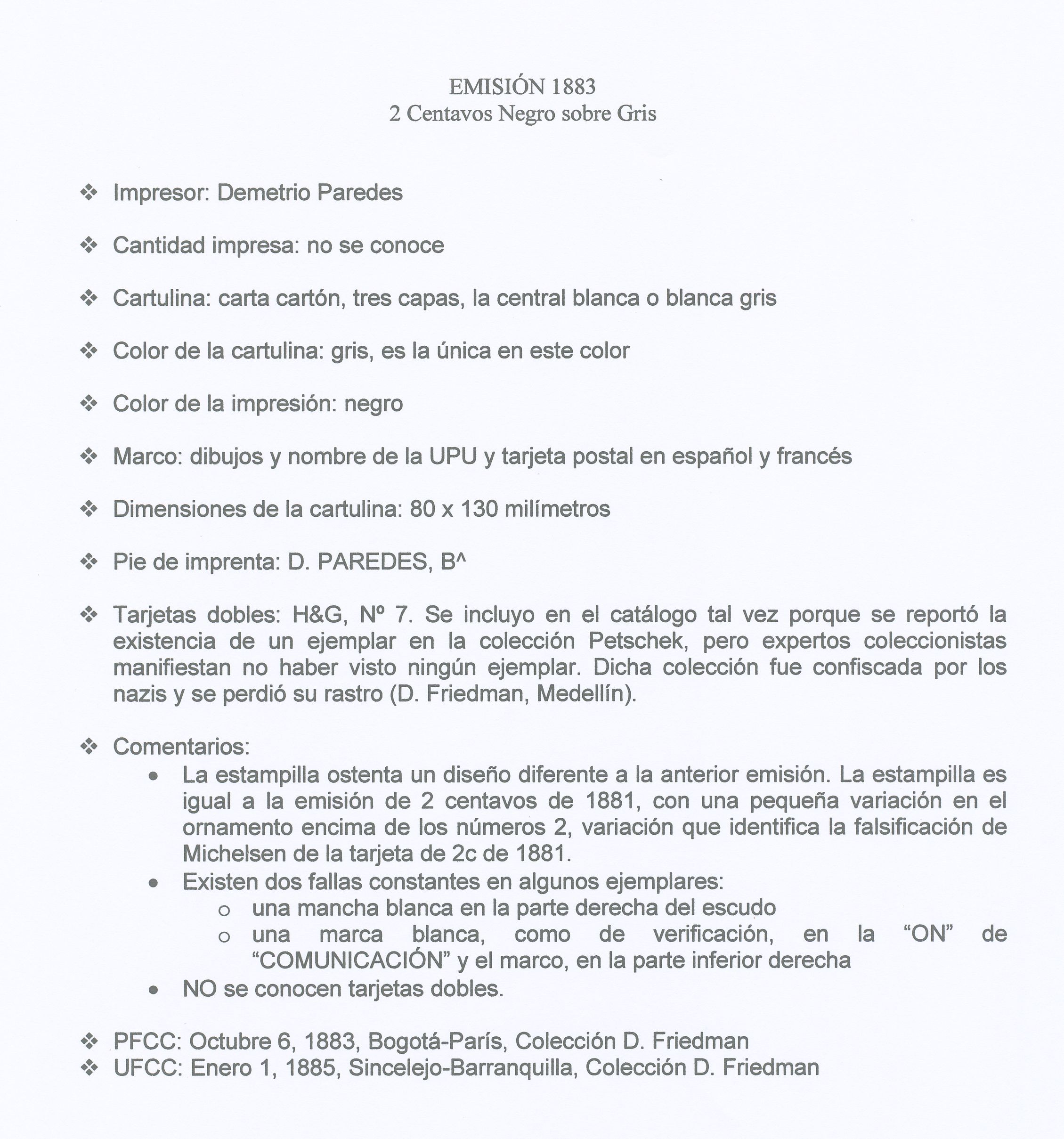 Esta emisión se realizó en la imprenta de Demetrio Paredes el año 1.883, siendo Presidente Rafael Núñez en su segundo mandato y un año antes del Levantamiento Liberal que puso fin a su mandato, alzamiento que tuvo lugar durante los años 1.884-5.-