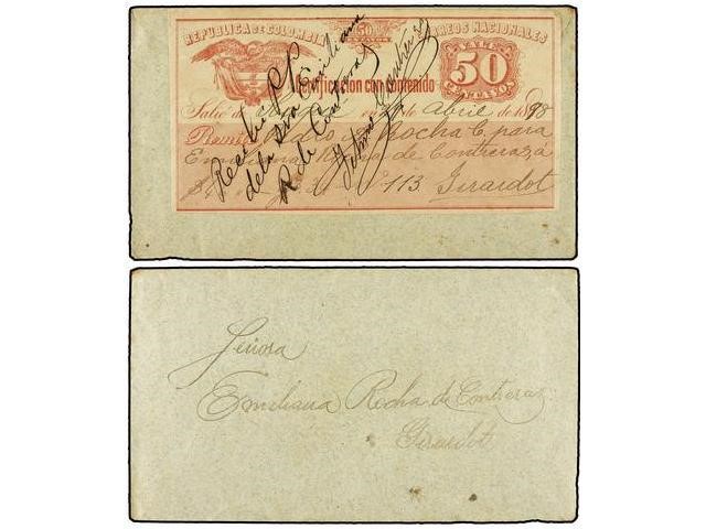 Las cubiertas fueron utilizadas y pagadas para asegurar el envío de dinero en billetes de curso legal o documentos legales (letras de cambio y escrituras) hasta por un valor máximo permitido de 100 pesos, como lo indicaba la ley que autorizó su impresión y uso, para la primera emisión de 1865. Fueron impresas varias emisiones hasta 1912 a nivel nacional y, a nivel regional se conocen las impresas en el Estado Soberano del Tolima (1878 a 1896, 7 emisiones) y la del Estado Soberano de Cundinamarca (1 solo valor).